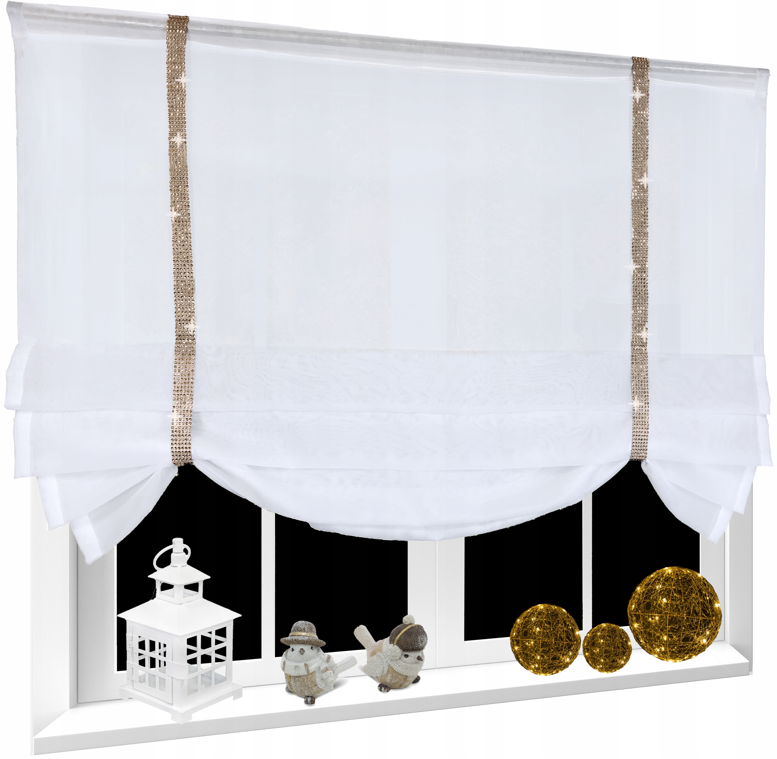 Ролеты из белоснежной ткани. Сверху пришивается тесьма длиной 5 см. Можно прикрепить зажимами или надеть на туннель.