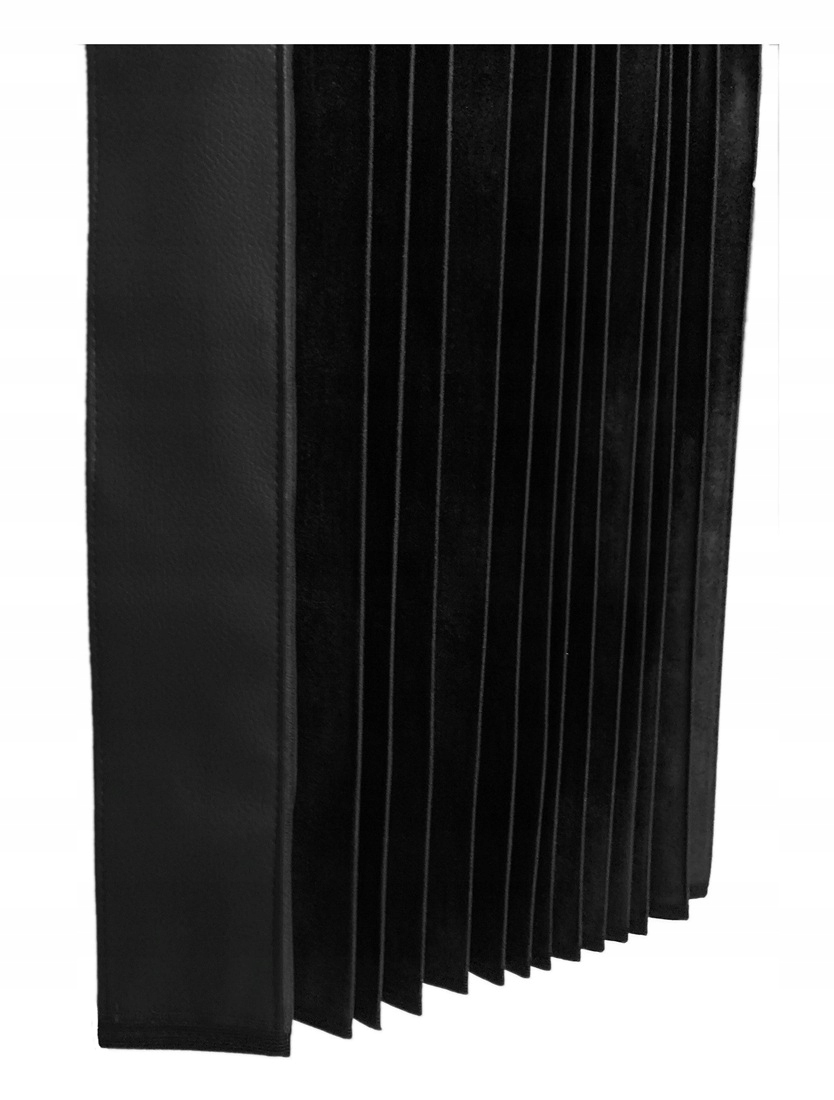 ПЕРЕДНЯЯ ЧАСТЬ ШТОР - КРАЙ ОТДЕЛЕН КОЖАНЫМ МАТЕРИАЛОМ, КОТОРЫЙ ПРИДЕРЖИВАЕТ ВСЮ КОНСТРУКЦИЮ И ОБЛЕГЧАЕТ СКЛАДЫВАНИЕ В НОЧЬЮ