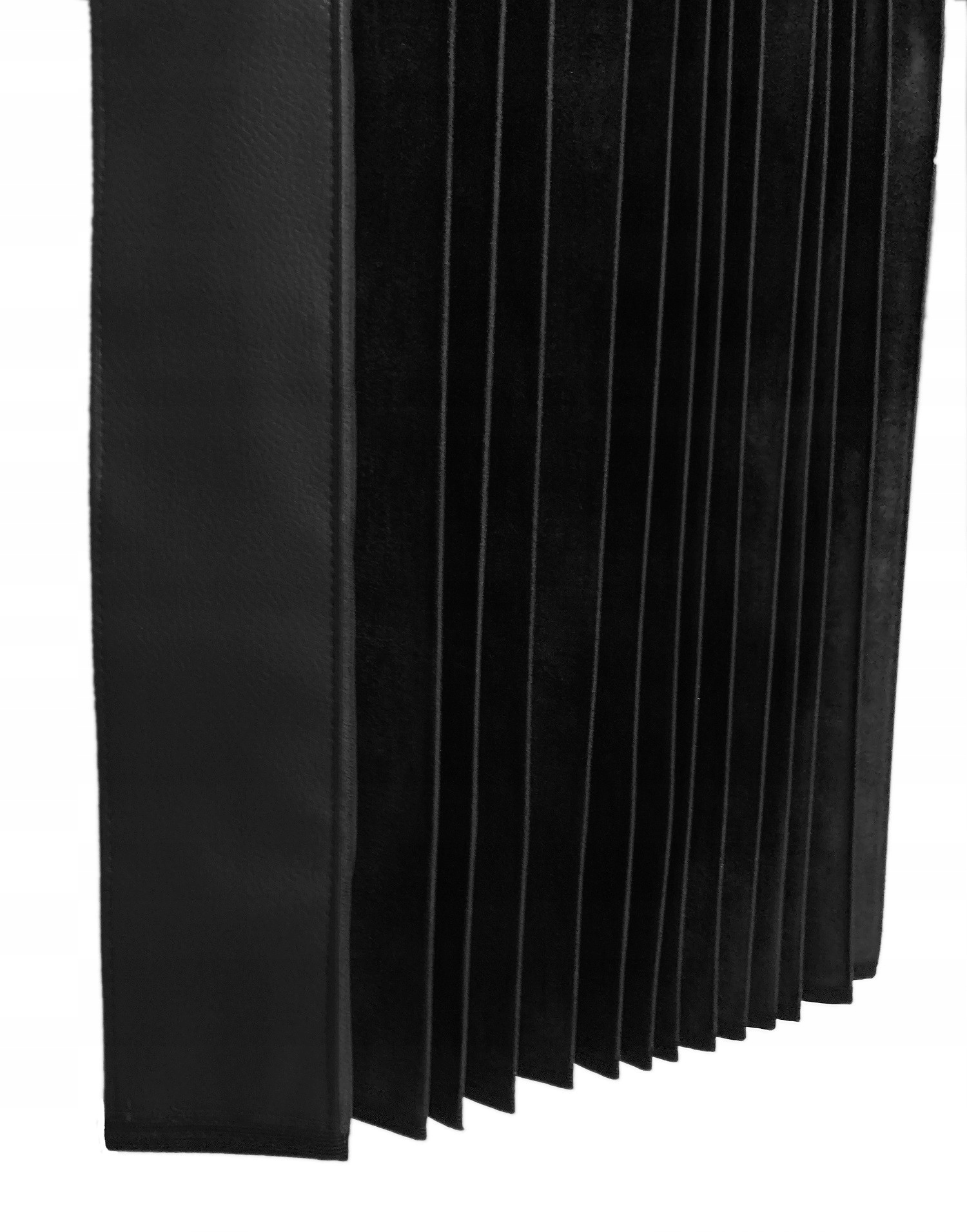 ПЕРЕДНЯЯ ЧАСТЬ ШТОР - КРОМОК ОТДЕЛЕН КОЖАНЫМ МАТЕРИАЛОМ, КОТОРЫЙ ПРИДЕРЖИВАЕТ ВСЮ КОНСТРУКЦИЮ И ОБЛЕГЧАЕТ СКЛАДЫВАНИЕ В НОЧЬ