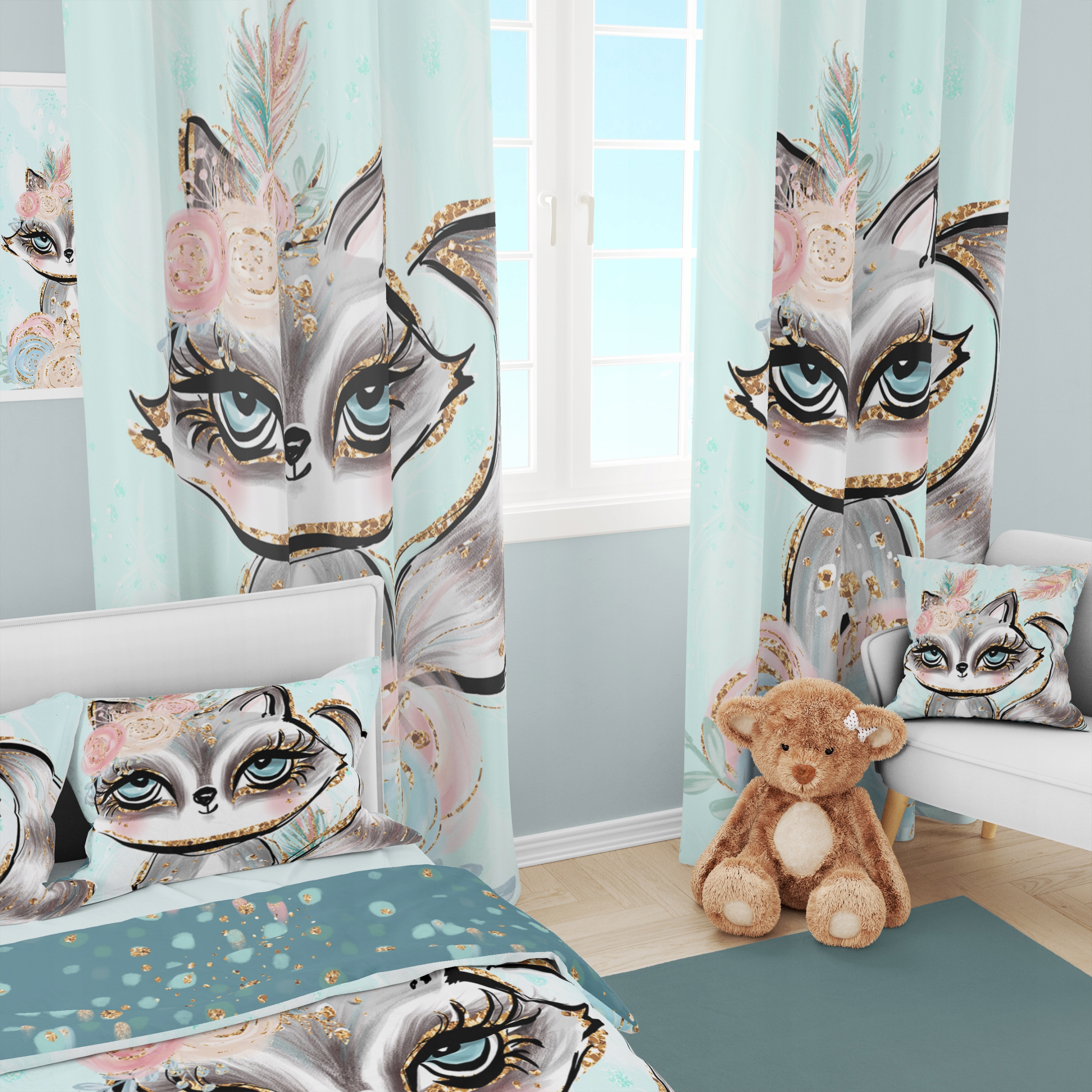 Шторы для детской комнаты KIDBE. Уникальная, неповторимая графика и высокое качество изделия – отличная идея для оригинального подарка. Вместе с дополнительными элементами коллекции KIDBE, такими как подушки, пледы и постельное белье – мы сможем организовать неповторимый, уютный интерьер для самых маленьких.