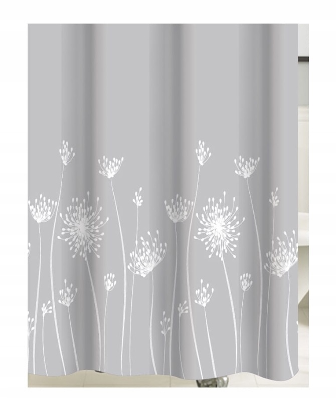 Предмет продажи - занавеска для душа с интересными узорами. Добавляем к шторе 12 колец, чтобы повесить ее на карниз.