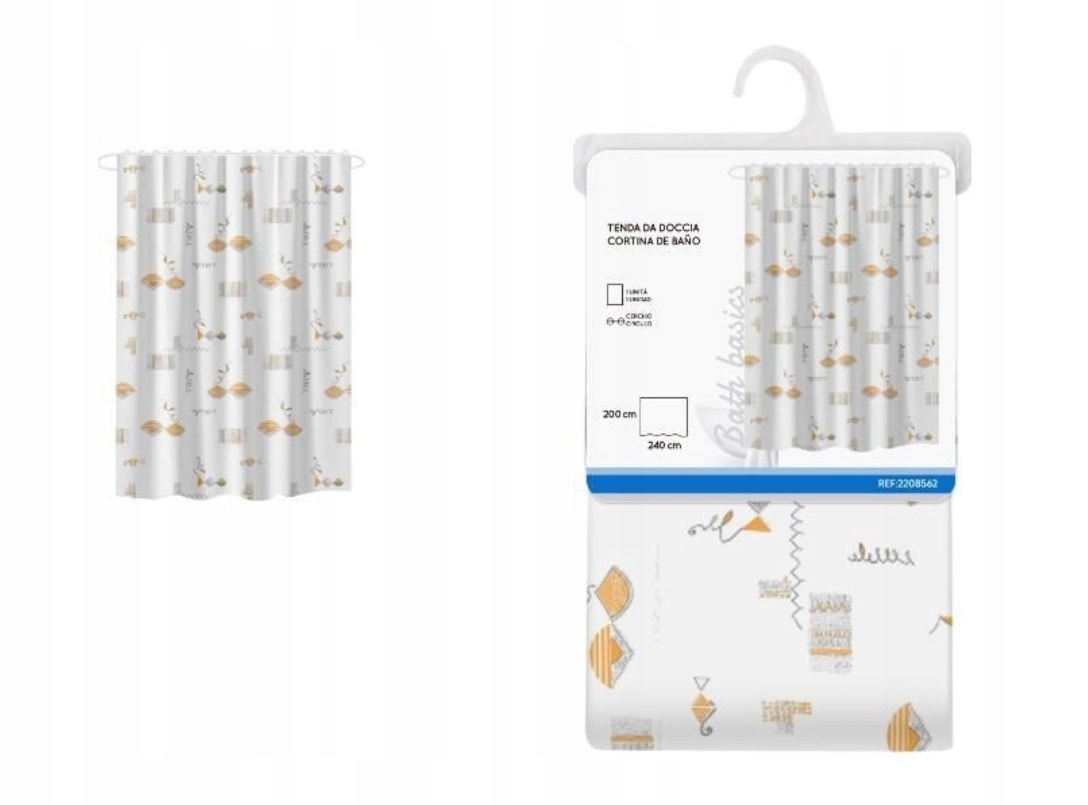 ЗАНАВЕСКА ДЛЯ ДУША 240х200см КРЮЧКИ БЕЛЫЕ УЗОРЫ ДЕКОР