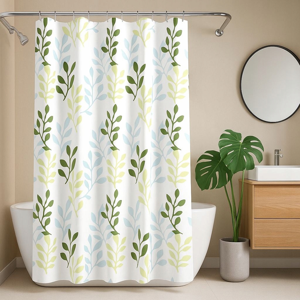 Водонепроницаемаяшторка для душа изготовлена из прочной, легкойпленки PEVA (полиэтилена).
