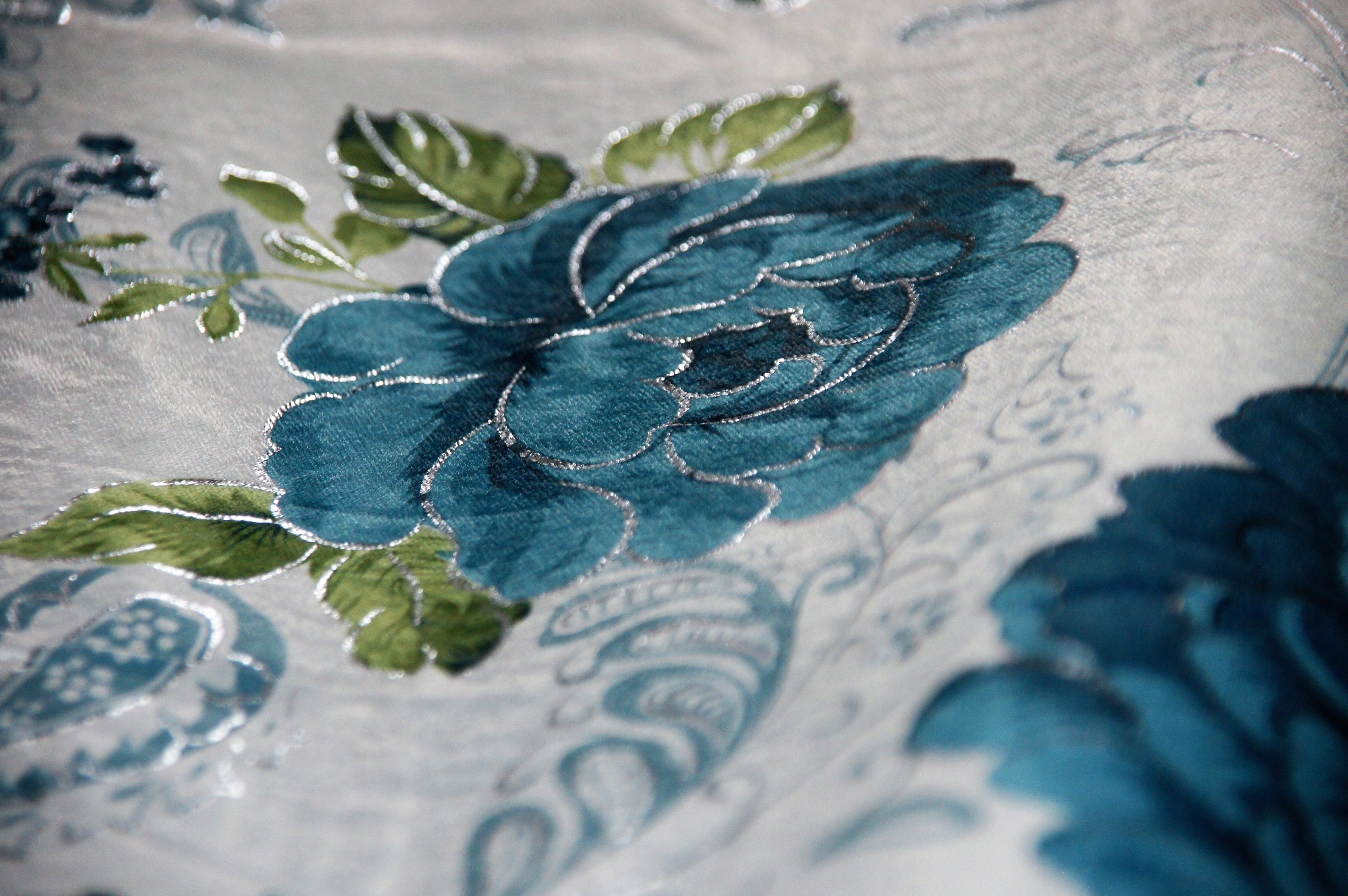 ТКАНЬ ДЛЯ ШТОР ЦВЕТЫ ДЛЯ ШТОР БИРЮЗА СЕРЕБРЯНАЯ НИТЬ 280СМ BLACKOUT ROSES