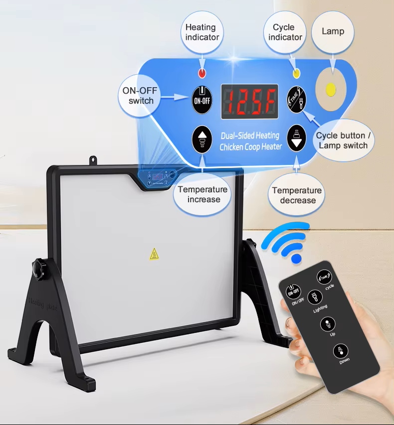 Регулирование температуры: Температуру нагревателя для инкубации цыплят можно регулировать с помощью кнопок или пульта дистанционного управления. Максимальная температура составляет около 75°C. Это температура поверхности нагревателя, и ее конкретное значение зависит от местных условий.