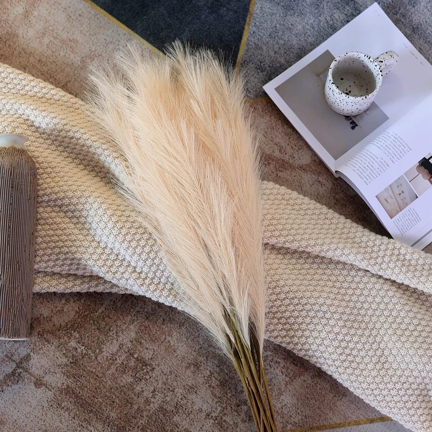 Искусственная пампасная трава – это модное дополнение интерьера, которое идеально имитирует натуральную пампасную траву, и при этом не опадает и безопасно. б> даже для аллергиков.