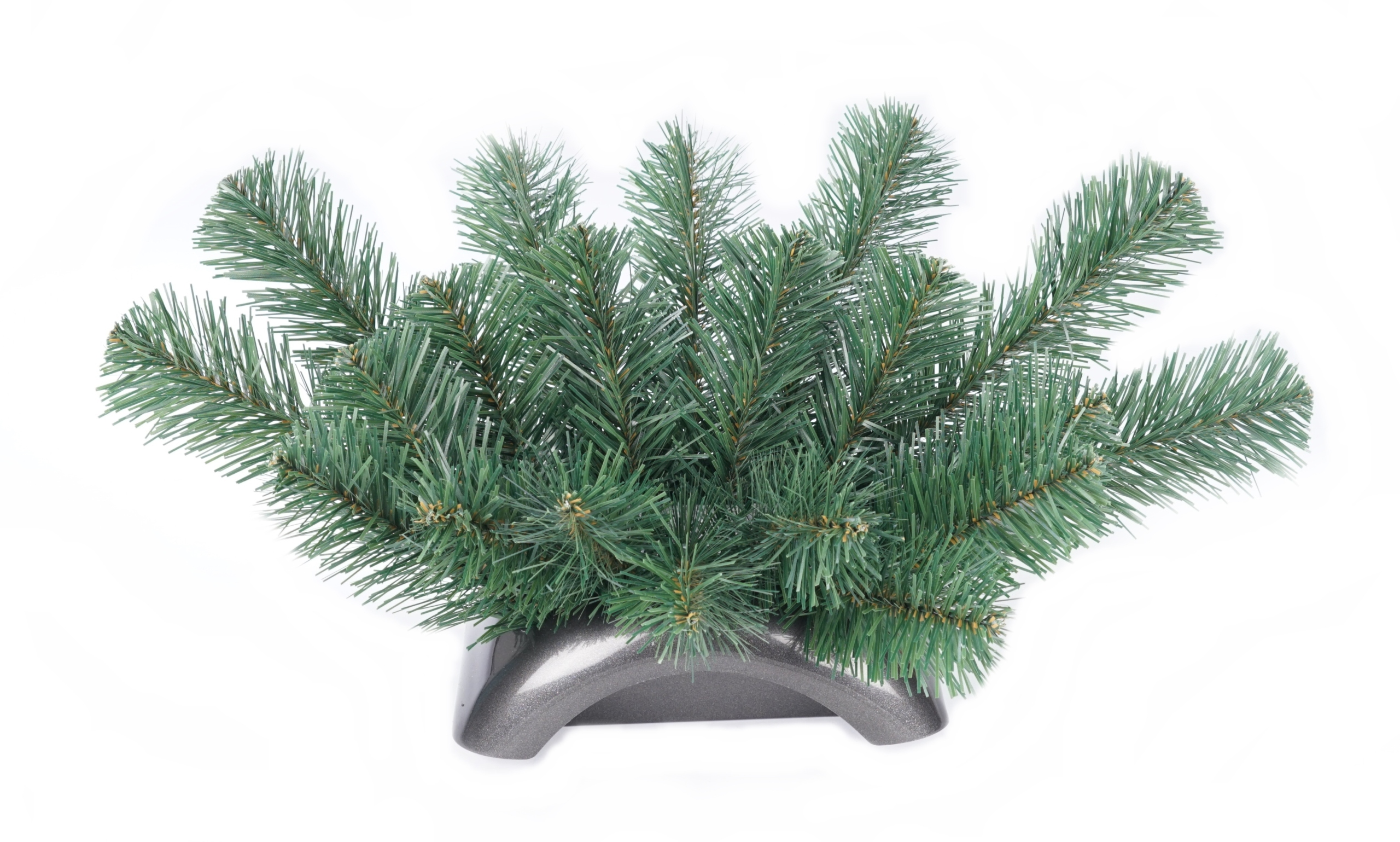 Искусственная подкладка из горшка, наполненного бетоном, в который помещен куб пенополистирола. Веточки хвойные, зеленые, из ПВХ-пленки, польский продукт.