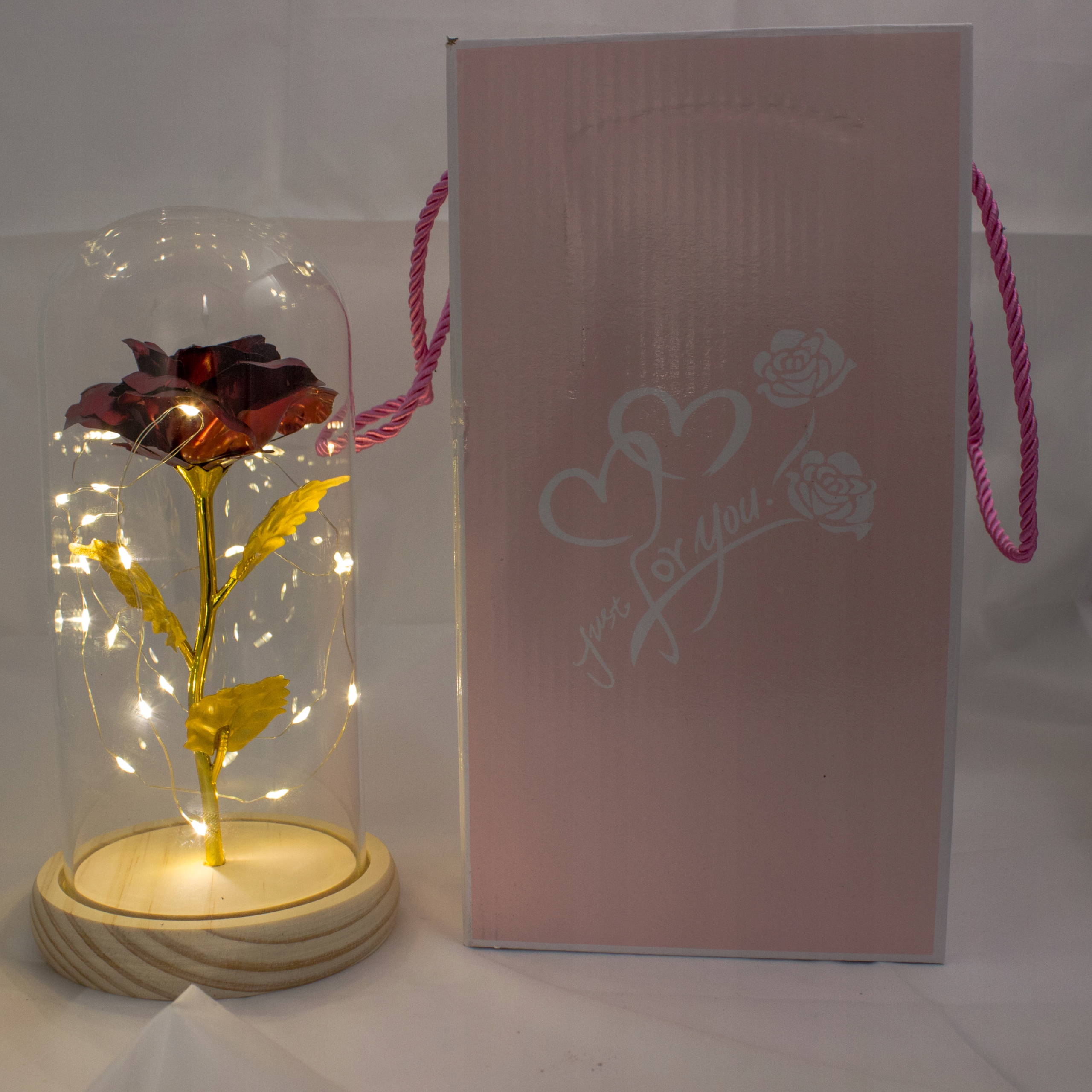 Эта тщательно изготовленная роза, символ любви, помещена в красивый стеклянный купол, сквозь который ее красоту можно увидеть постоянно, даже в темноте, поскольку она подсвечена 20 светодиодными лампочками