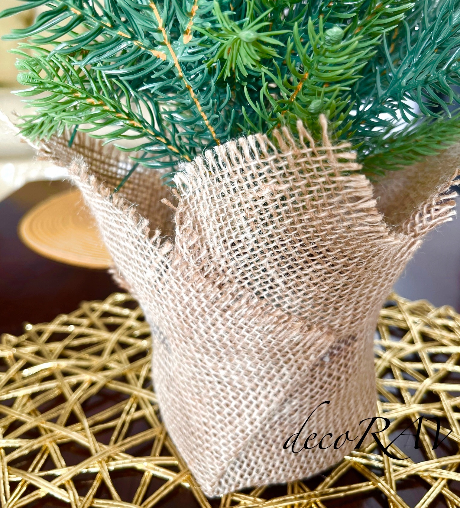 Елка устанавливается в утяжеленный горшок. .бетон и обтянут натуральным джутом.