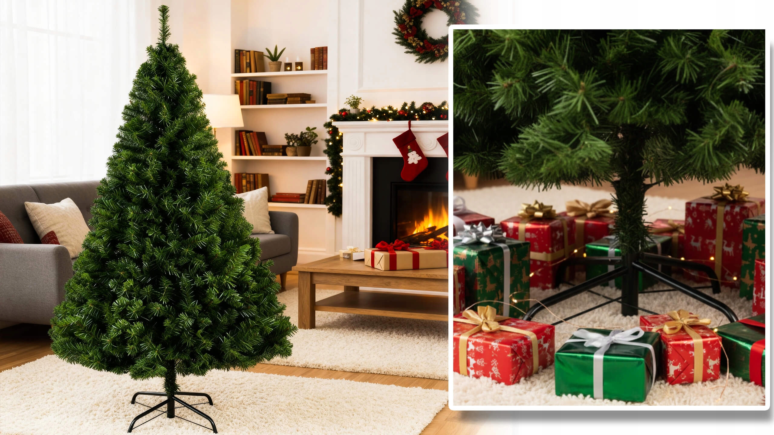 Рождественская елка создана так, чтобы максимально точно воспроизвести внешний вид натуральной елки. Густая хвоя, пышная зелень и правильно расположенные ветки делают ее очень аутентичной, и при этом она не требует никакого ухода.