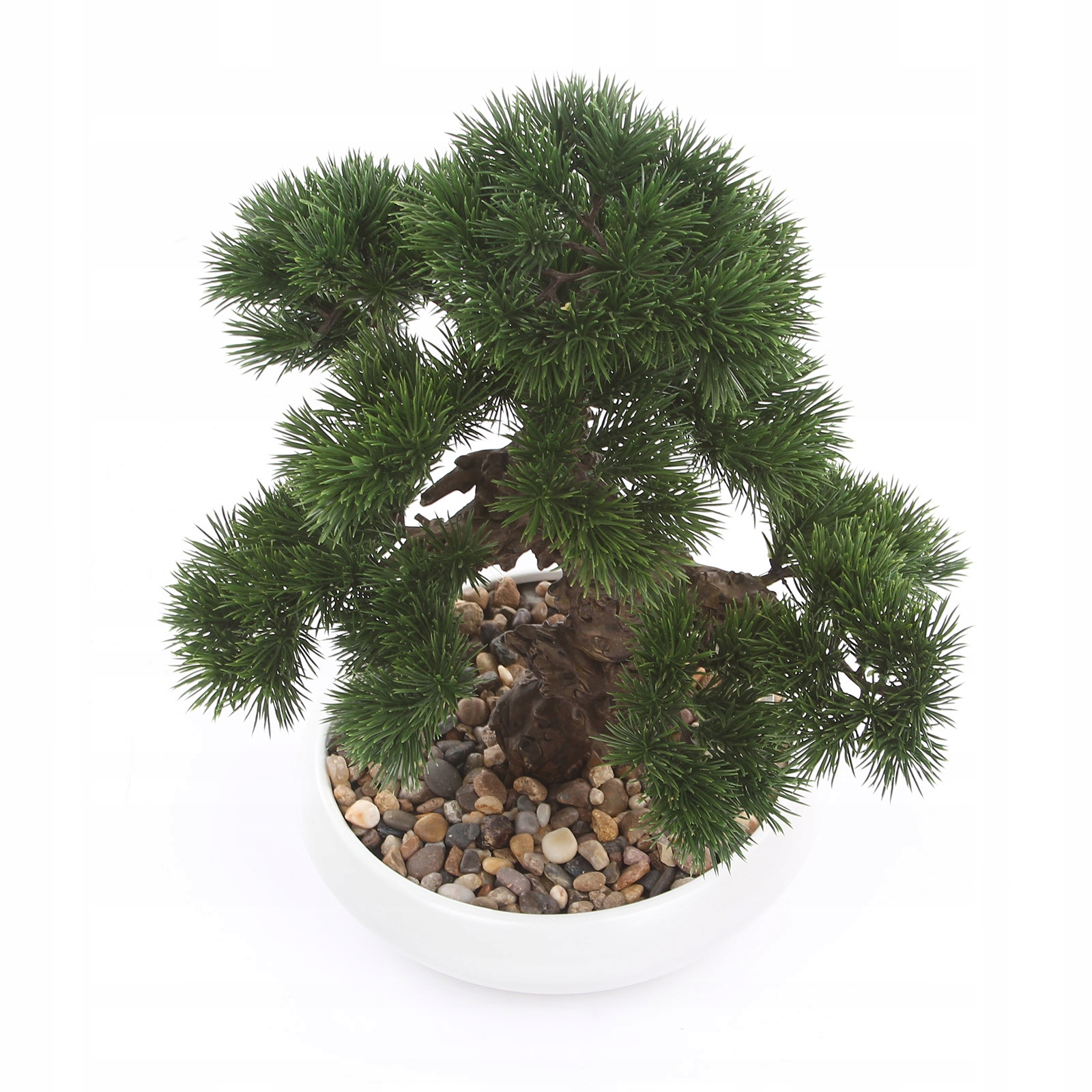 Искусственное дерево бонсай PINUS 37 см, в белом низком керамическом горшке