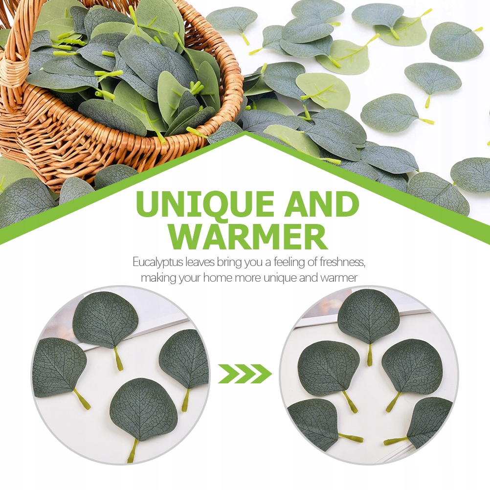Поддельные листья эвкалипта можно использовать в различных эстетических целях: они подходят для изготовления венков своими руками, украшения дома, украшения праздничного стола.