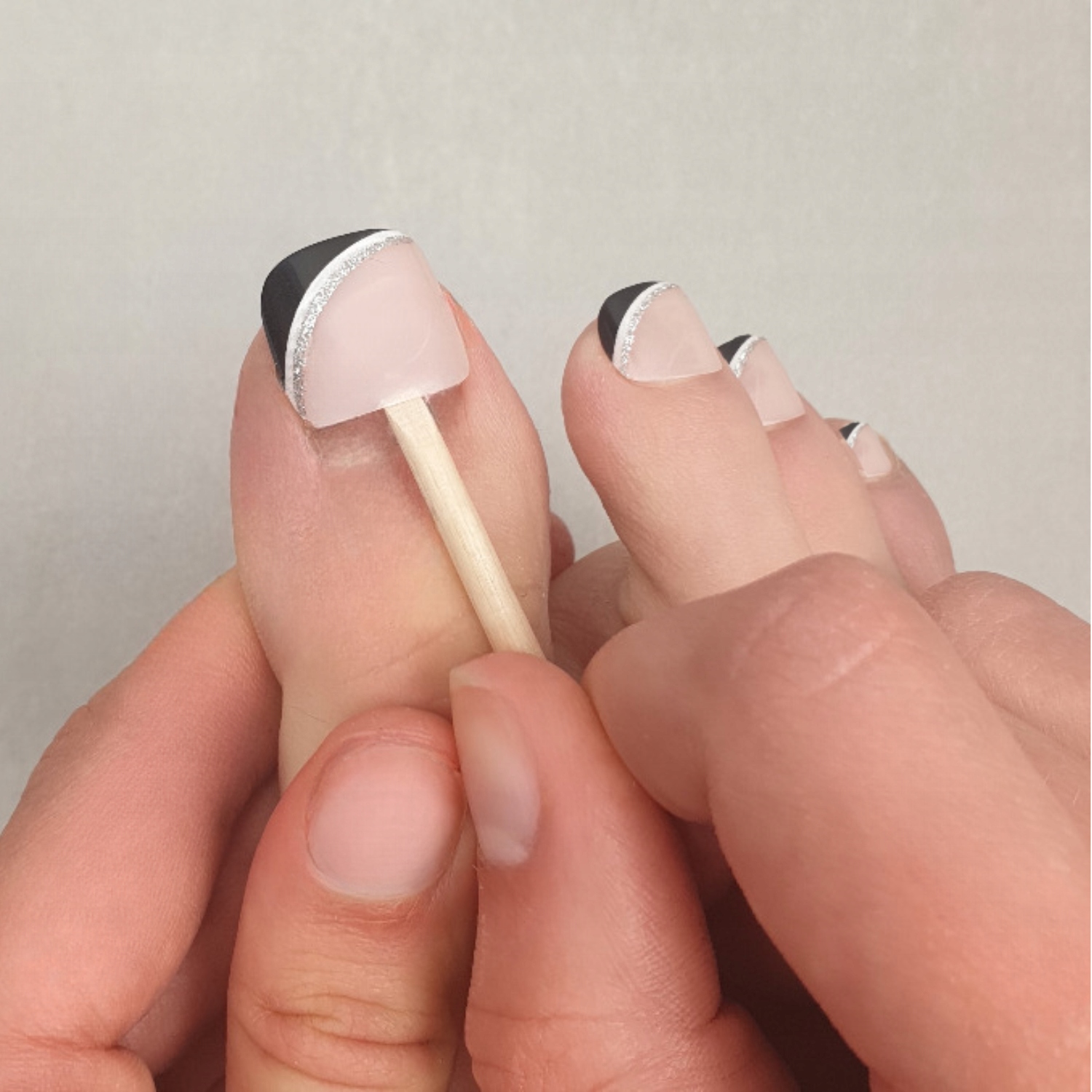 - по истечении указанного времени аккуратно поддеть приклеенные кончики на ногтях, используя деревянную палочку