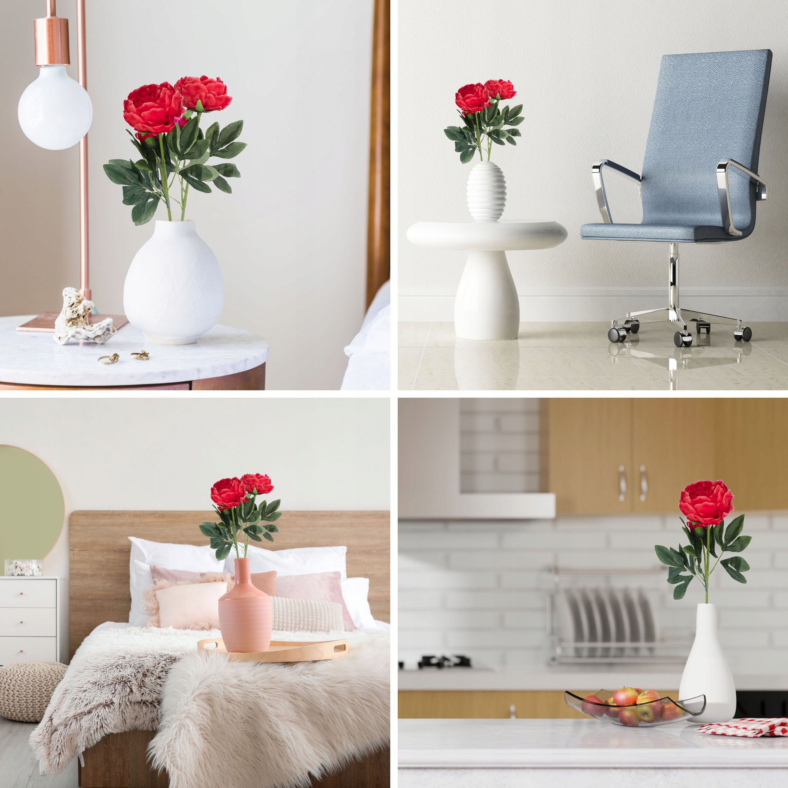 Откройте для себя очарование искусственного пиона, красивого, как природа. Эта элегантная ветка, изготовленная из материалов высочайшего качества, привносит в интерьер нежность и богатство красок живых цветов.