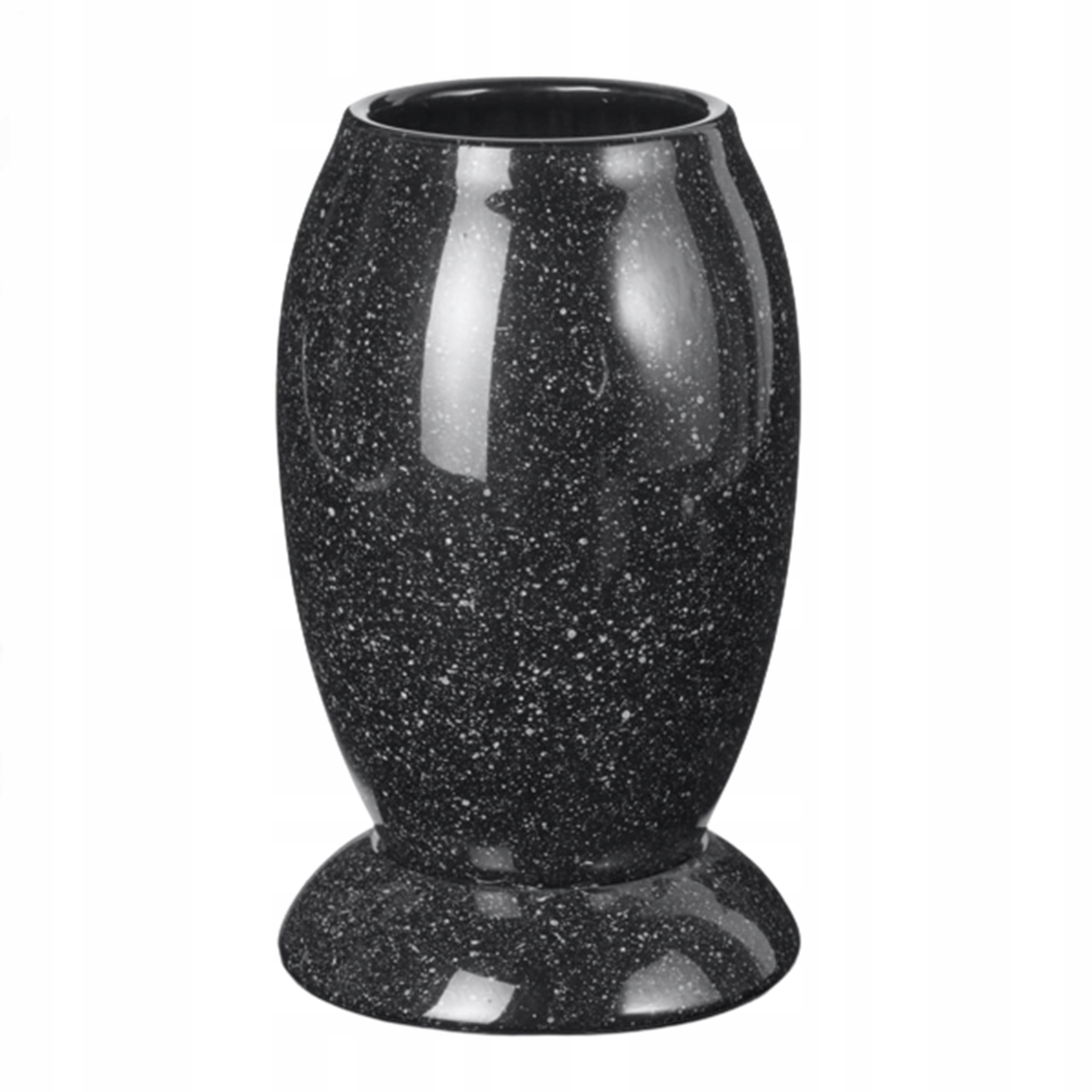 Черная ваза с эффектом мрамора подчеркнет торжественный вид могилы, а хризантемы добавят шарма и нежности.