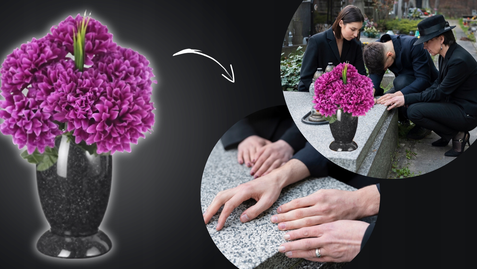 ✳️ Набор с элегантной мраморной вазой и великолепным букетом – это не только знак уважения, но и эстетичное украшение надгробия. Он добавляет шарма и достоинства. могилу, создавая место, полное красоты и покоя.
