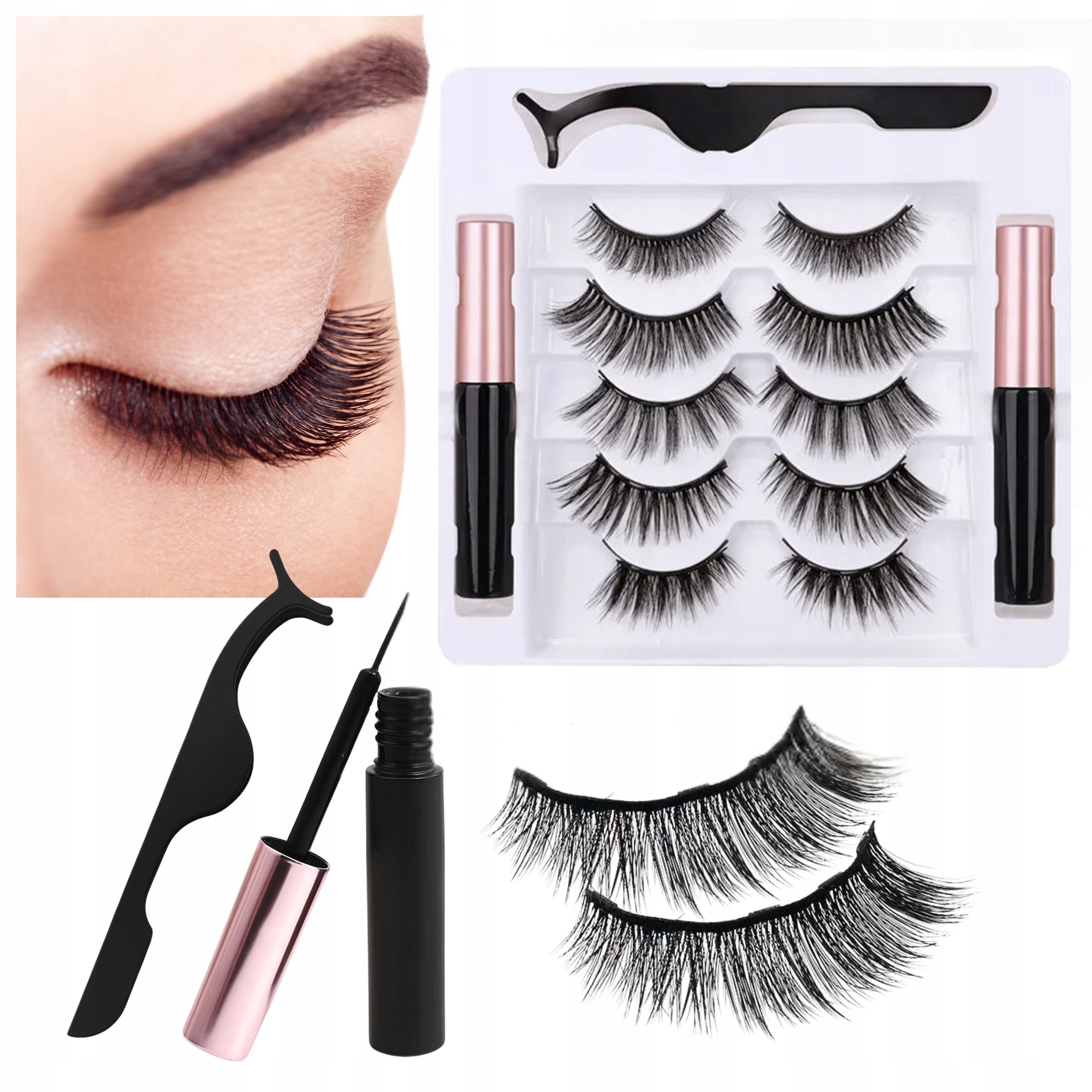ИСКУССТВЕННЫЕ МАГНИТНЫЕ РЕСНИЦЫ С АППЛИКАТОРОМ 5 ПАР ДЛИННЫХ ТОЛЩИХ + 2 ПОДВОДКИ ДЛЯ ГЛАЗ