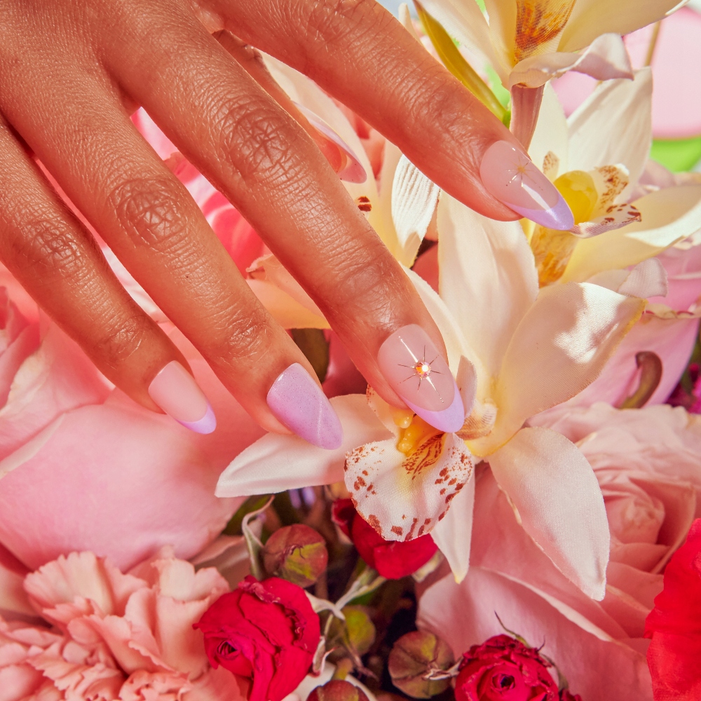 Фиксация ногтей: приклейте ногти с помощью прилагаемого клея, аккуратно прижмите их к ногтевой пластине и подержите 5 секунд.
