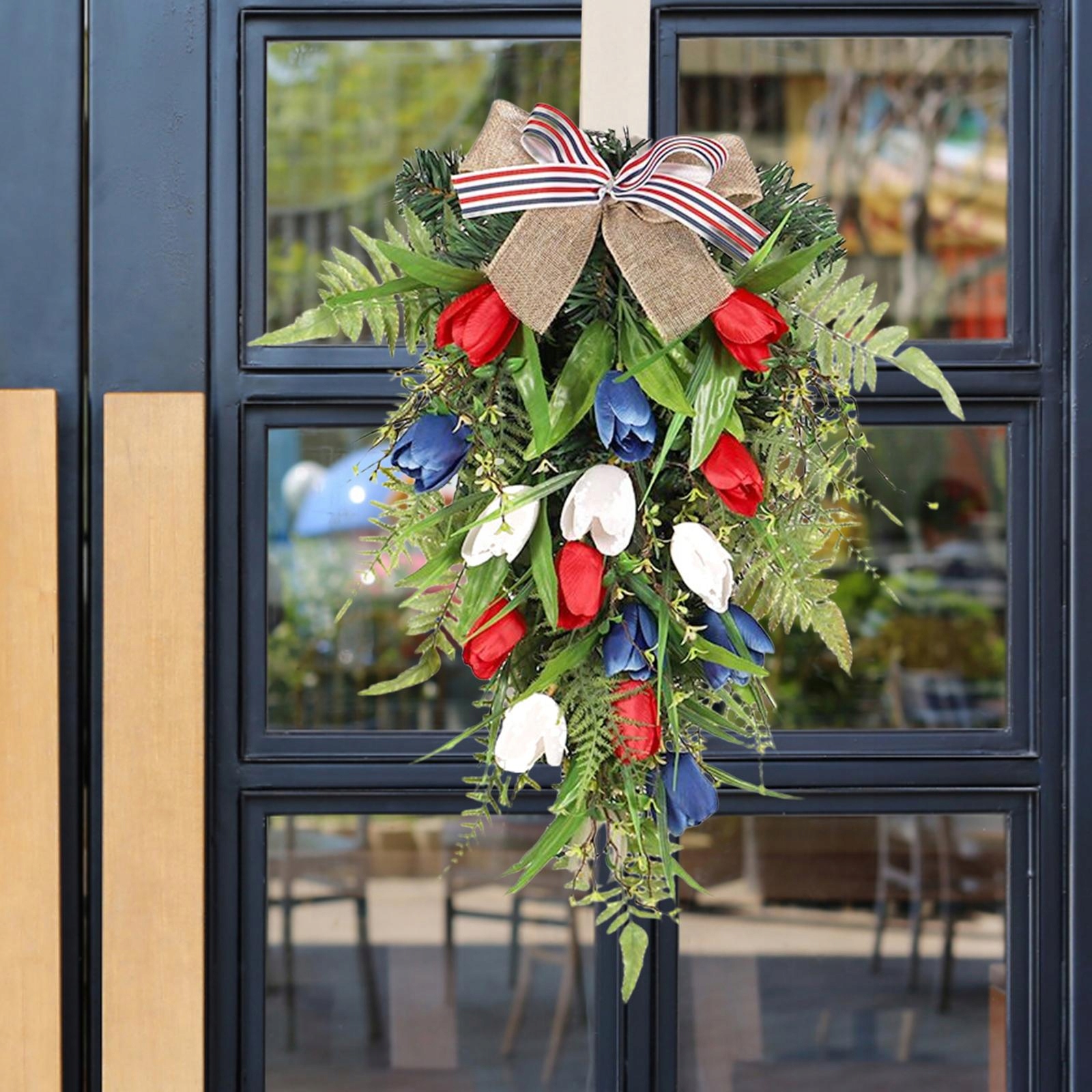 High material: Made of a flower of the rattan circle simulation, realistic, lively, not easy for fading, the beauty of the home decoration, tulips, tulips, Wianek Front Door Swag: Realistic from artificial tulips, live flowers, with realistic greenery and ribbon matching all the atmosphere, adding fresh atmosphere, adding fresh atmosphere to all Your home