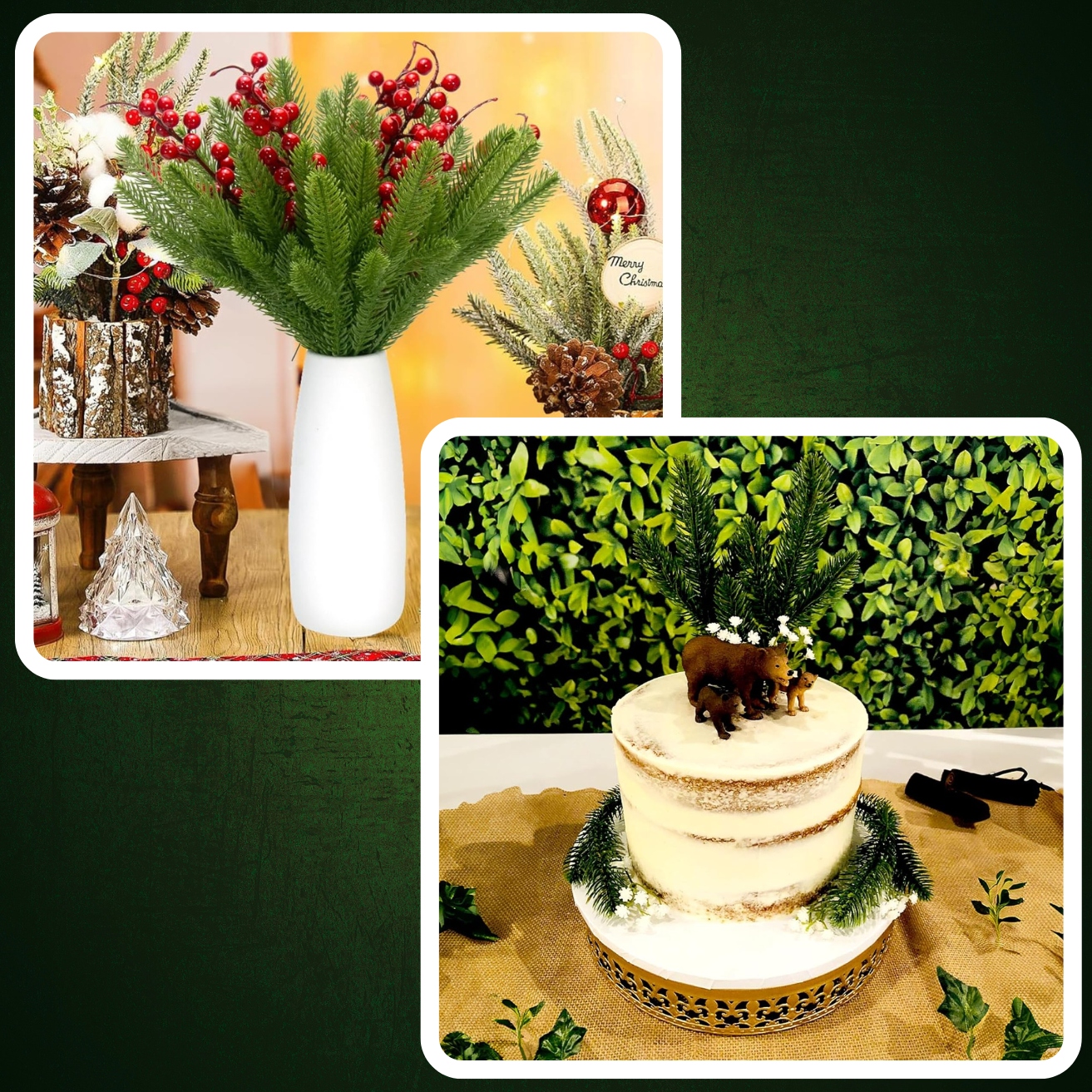 ✅ ИДЕАЛЬНАЯ ИДЕЯ ДЛЯ ДОПОЛНИТЕЛЬНОГО АКЦЕНТА ДОМА - Еловые веточки идеально подходит в качестве очаровательного дополнения к любому рождественскому украшению. Их можно использовать как декоративный элемент в вазах, как фон для рождественских свечей и даже как украшение подарков, придавая им неповторимый, праздничный характер.
