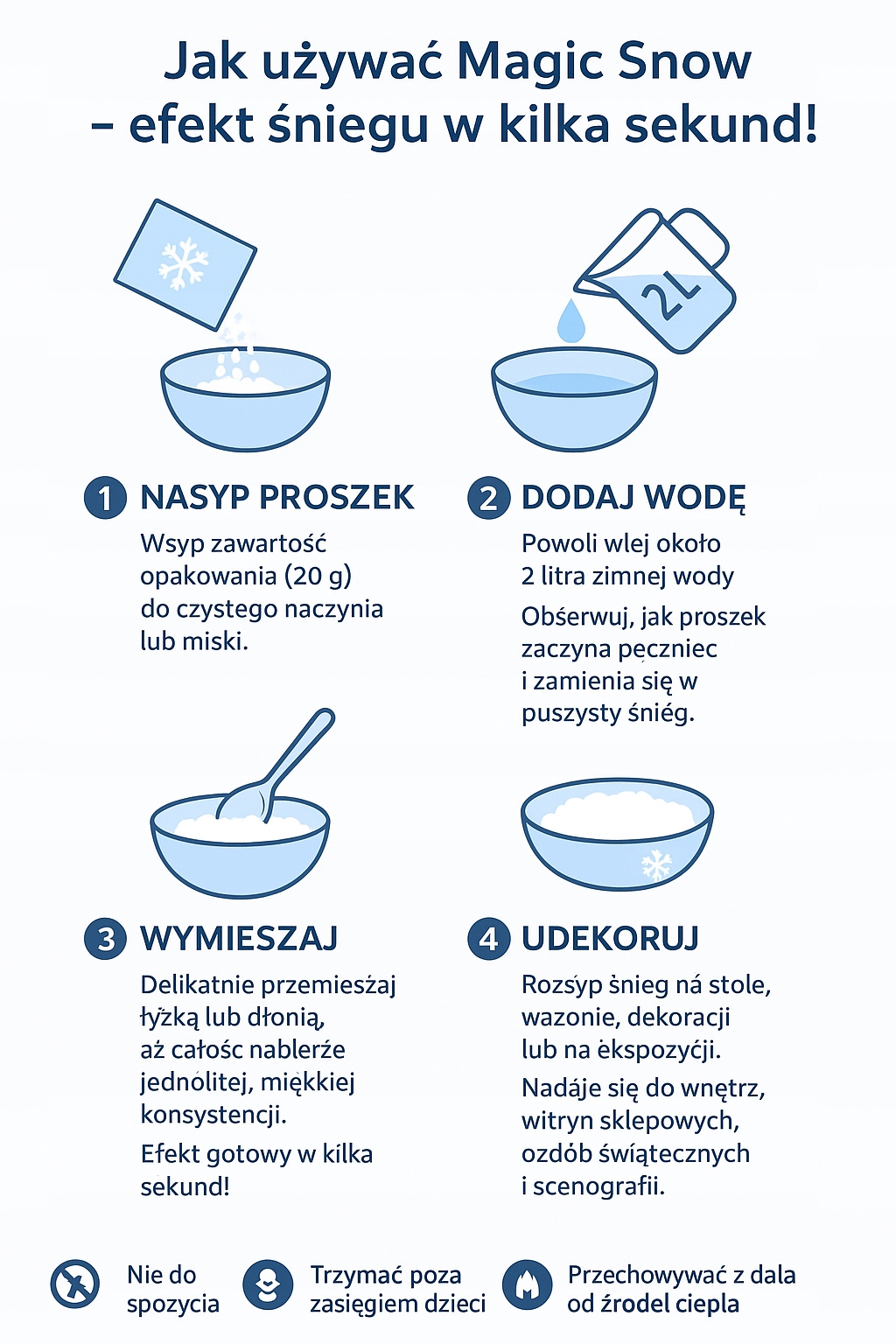 Инструкция по применению - Magic Snow (искусственный порошкообразный снег)