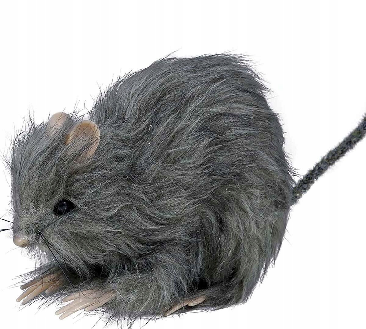 Большая черная крыса. Грызун изготовлен из пластика, представляет реалистичные детали, такие как мех, длинные усы и удлиненный хвост, который немного сумасшедший в конце. У крысы агрессивный вид из -за открытого рта, который, как и мышь, может использоваться в качестве украшения для Хэллоуина, для пугающих или других тематических расположений, например, Заброшенный/дом с привидениями.