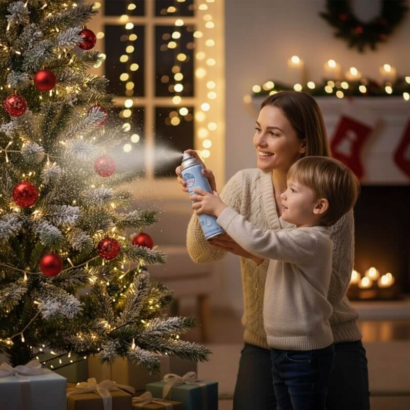 Да, искусственный снег можно использовать для елок (как настоящих, так и искусственных) и украшений, придав им праздничный характер. Не забывайте соблюдать необходимую дистанцию во время применения.