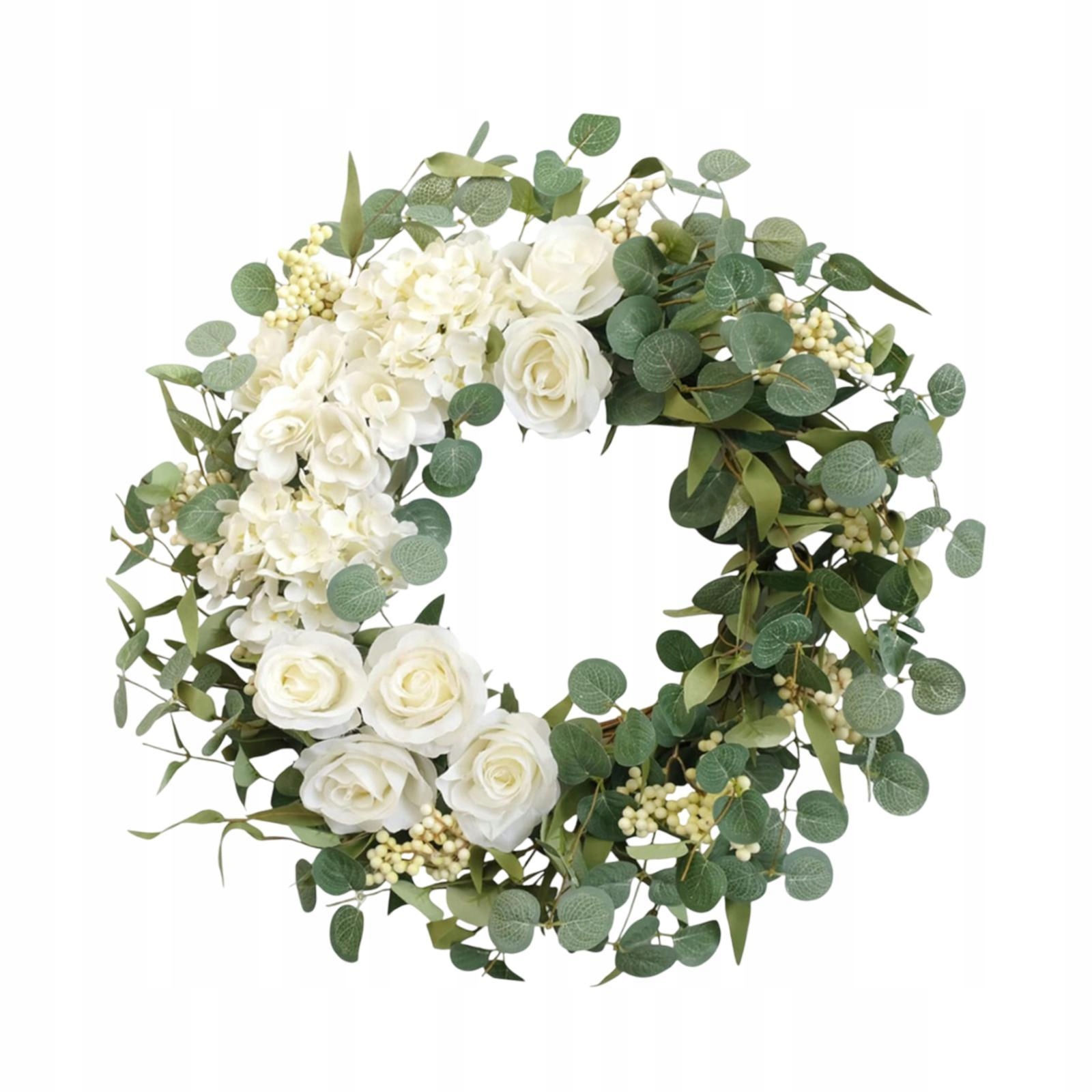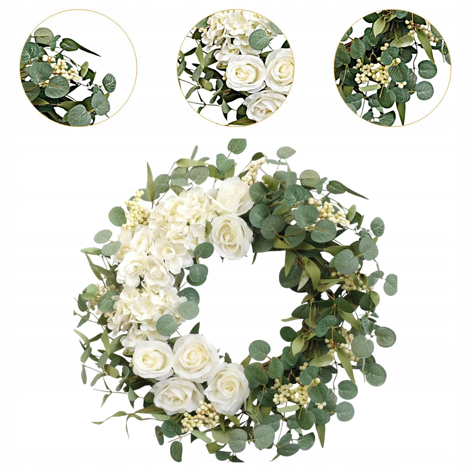 [венок с украшениями]: венок на входной двери представляет искусственные пионы, розы, гортензии и украшения листьев эвкалипта и обладают реалистичными визуальными эффектами
