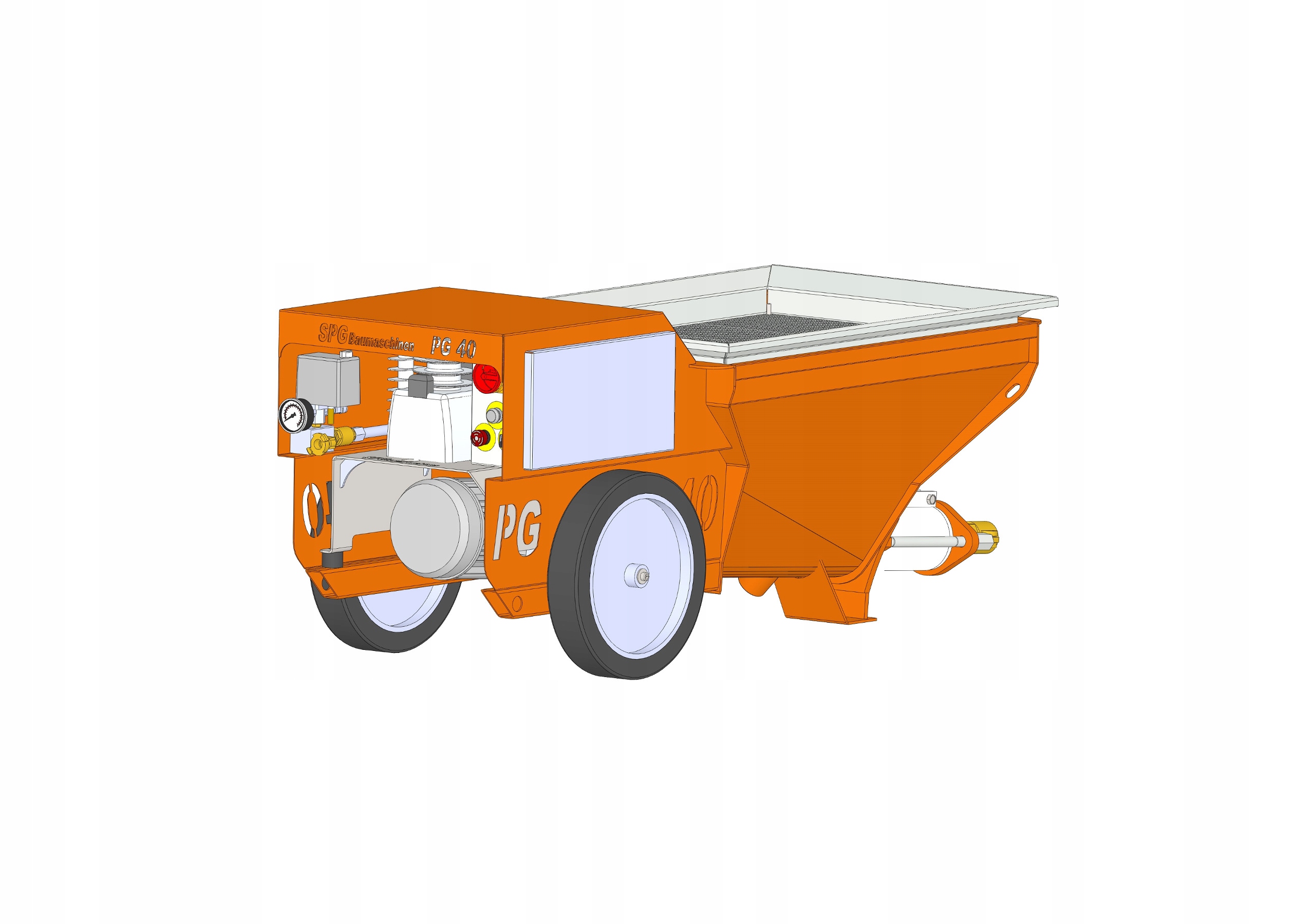 PG40 — универсальный агрегат для накачивания и напыления цементно-известковой штукатурки, мелкозернистого бетона, акустических штукатурок, тонкослойных штукатурок, ремонтных штукатурок, клеевых растворов (для полистирола), огнезащитных растворов, растворов SPCC (мокрый торкрет-бетон), машин для литья растворов.