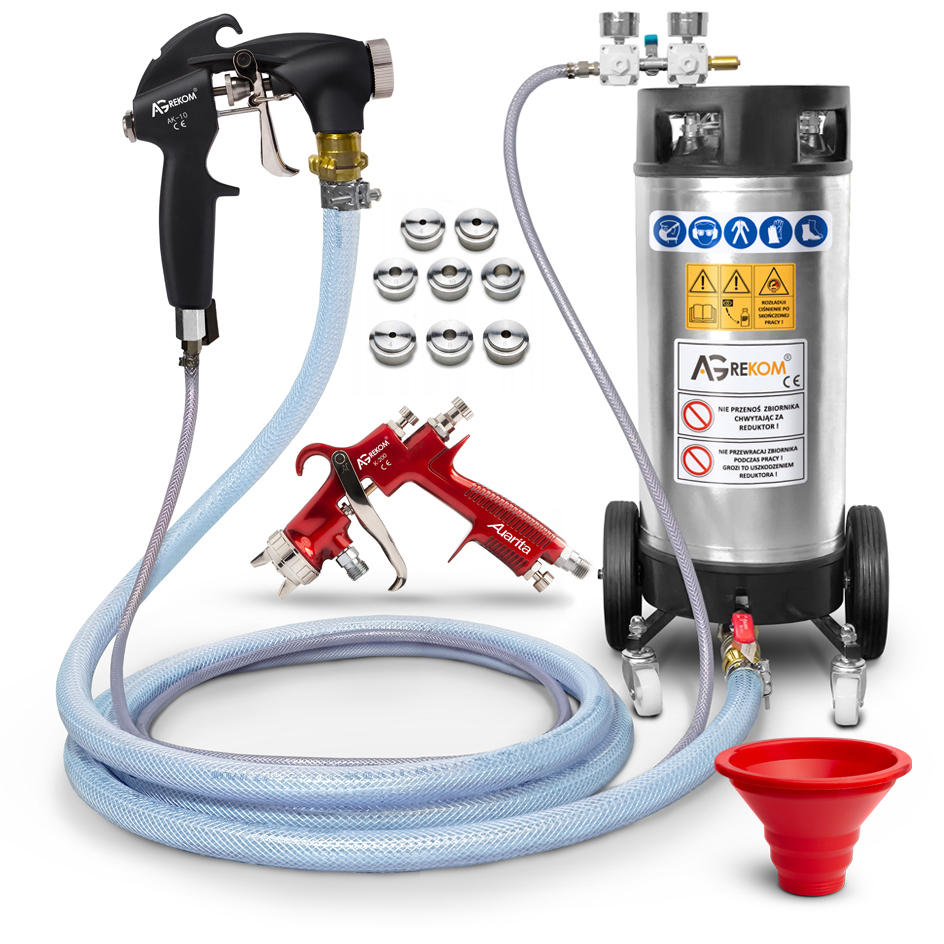- 10 м армированного шланга со штуцерами для подключения эмульсионного пистолета с внутренним диаметром 8 мм (2 болтовые секции по 5 метров),