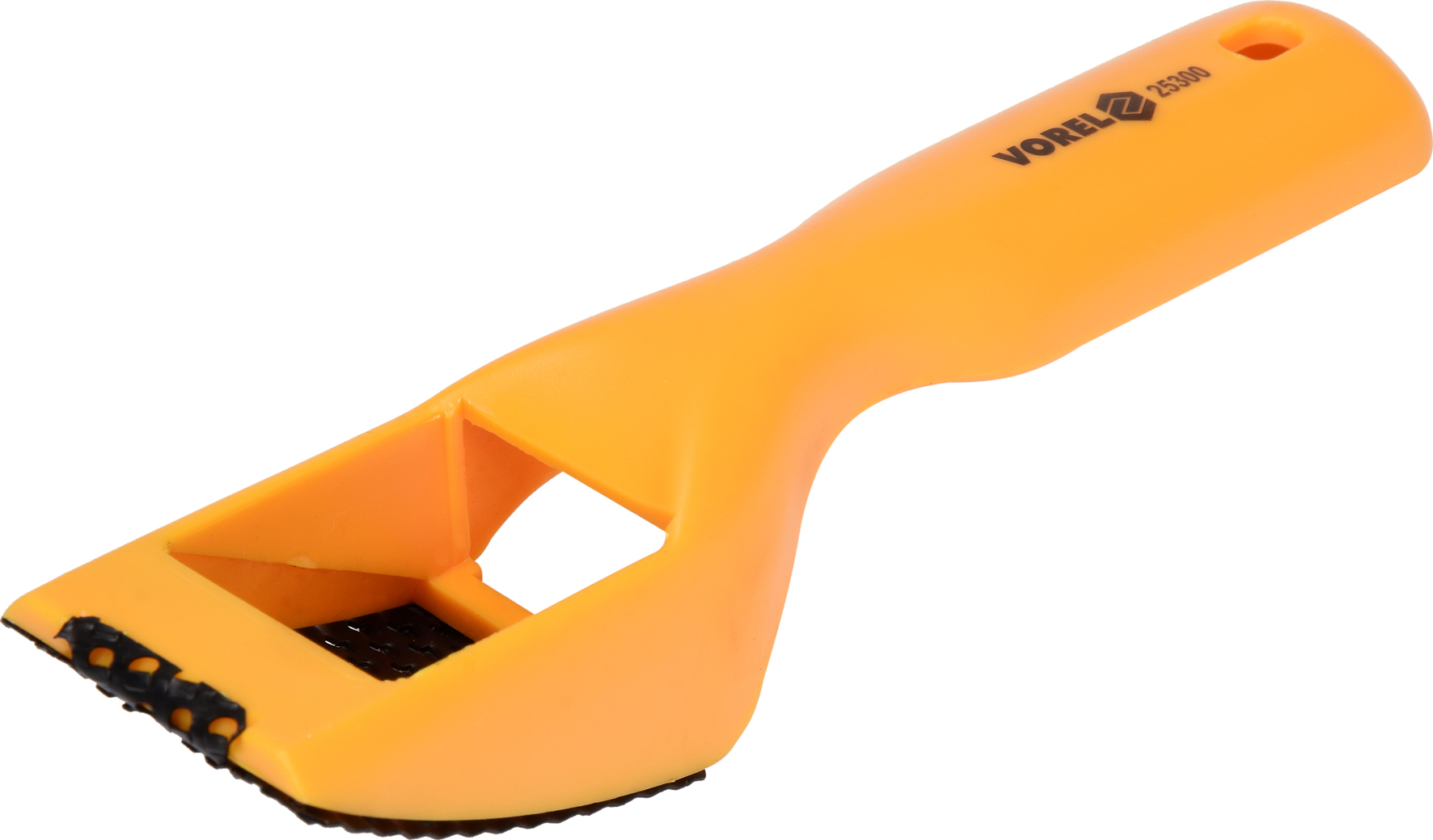 Рашпиль, широко известный как рашпиль для гипсокартона. Состоит из рукоятки и корпуса, к которому внизу прикреплена рабочая часть (терка из высококачественной стали с обозначением 65 Мн).