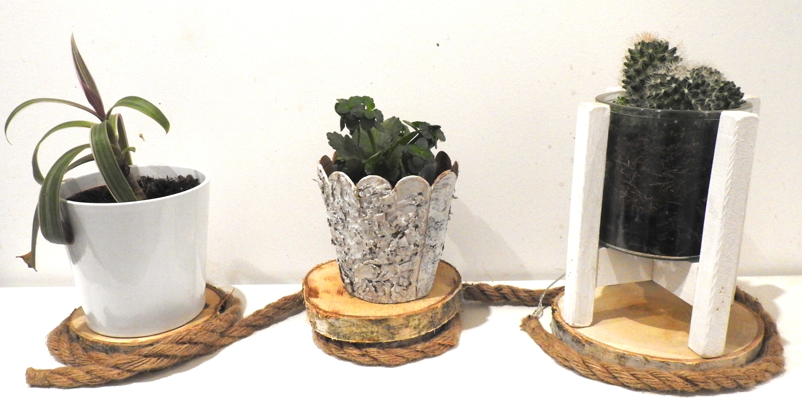 Кусочки натурального дерева прекрасно сочетаются в качестве декоративного элемента для любых растений.