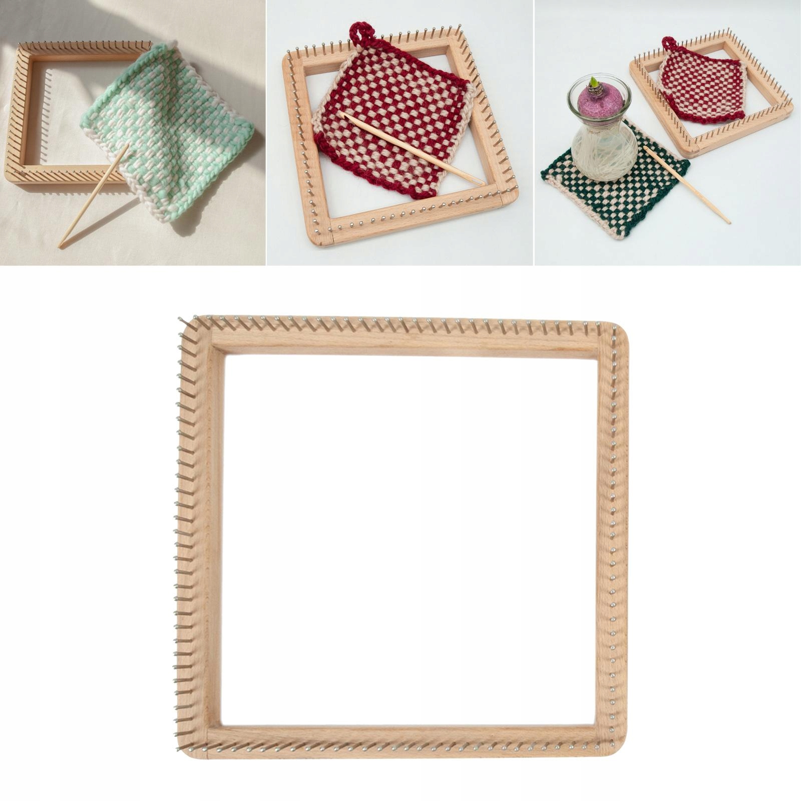 Вязальные станки изготовлены из дерева и долговечны, уменьшают истирание пряжи в процессе вязания.