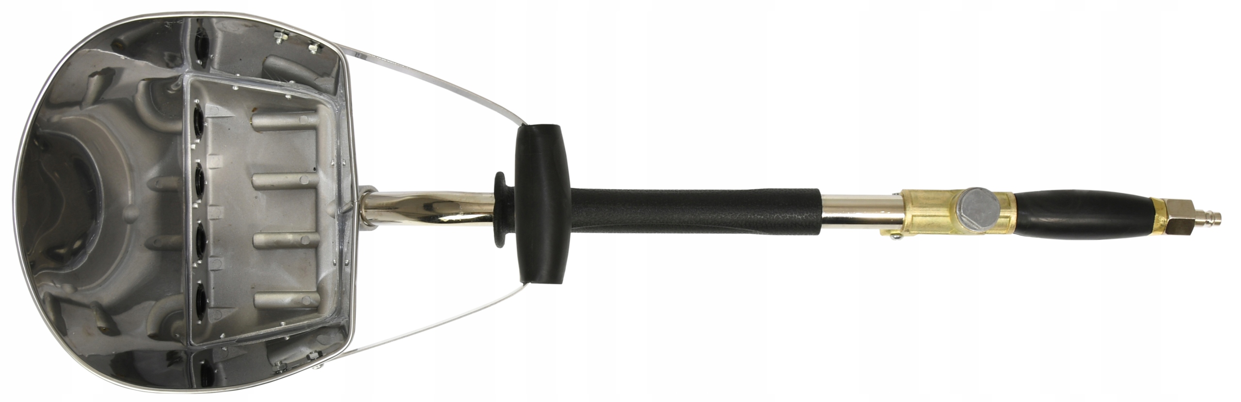Прибор изготовлен из алюминия и нержавеющей стали, имеет прорезиненные ручки и длинную спусковую кнопку для облегчения работы.