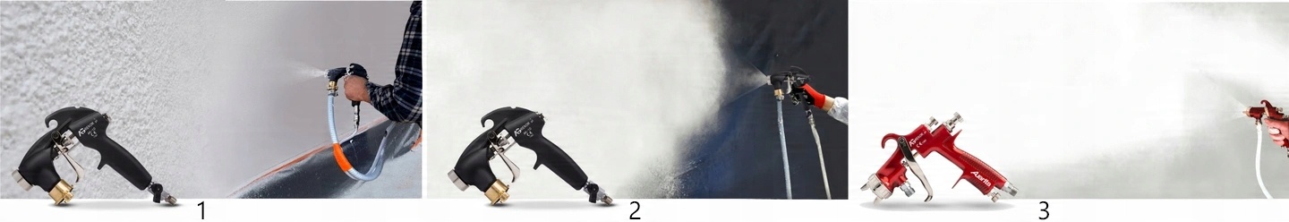 Пистолет имеет функцию перекрытия воздуха с помощью спускового крючка. Это решение предотвращает образование так называемого «клякса» на стене.
