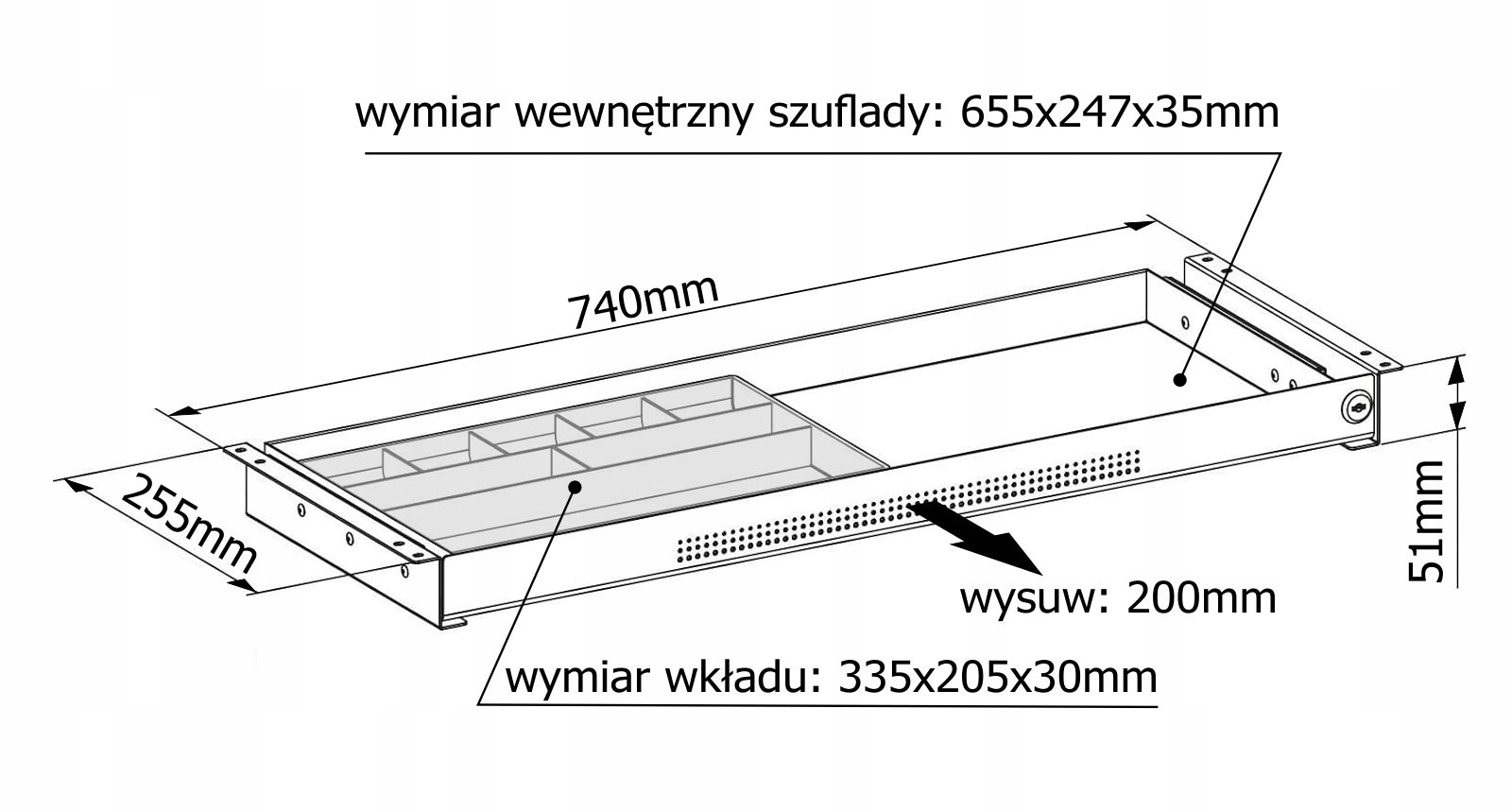 ЯЩИК ПОД СТОЛЕШНИЦУ - PERFO 74, цвет ЧЕРНЫЙ
