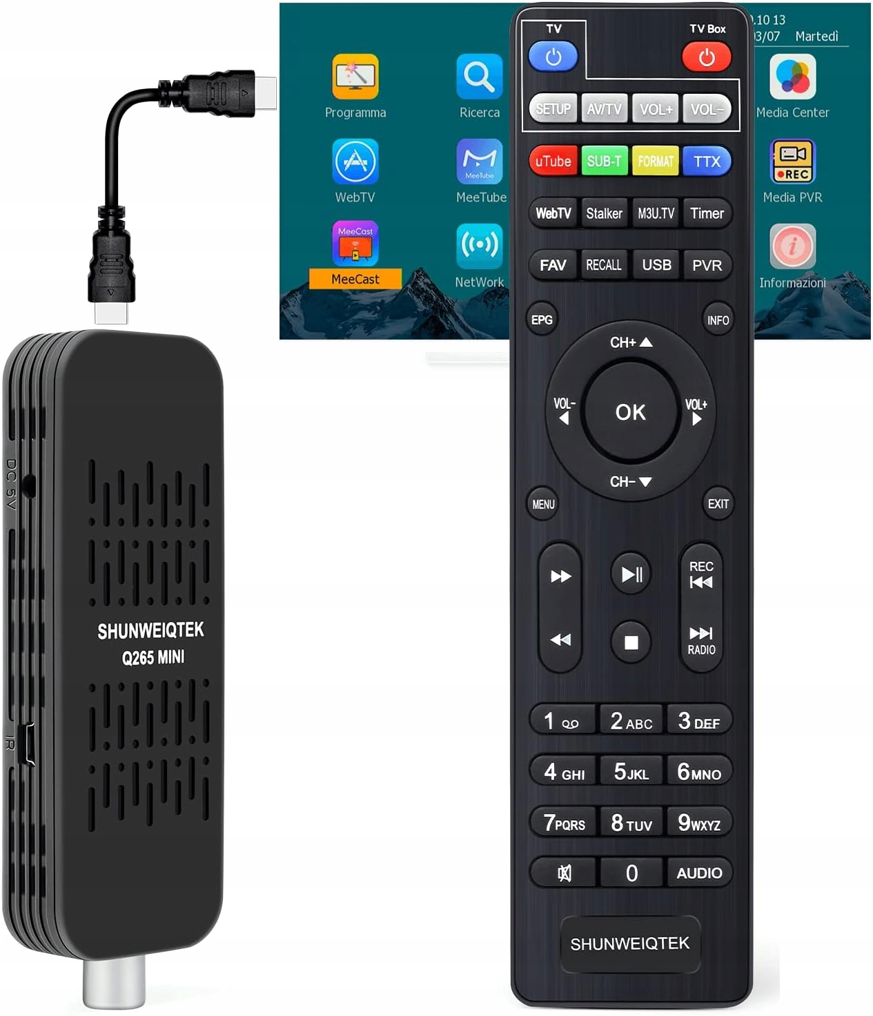 ⭐️SHUNWEIQTEK Q265 MINI Earth Digital DVB-T2 декодер Invisible TV Stick, новый приемник DVB T2 2023 года с поддержкой H.265 HEVC Main10 USB WiFi PVR LCN EPG, DLNA MeeCast с универсальным пультом 2-в-1⭐️
