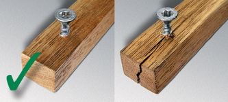 Сверление занимает много времени, но его можно избежать, используя винты SPAX с гофрированным профилем и наконечником SPAX 4CUT. В этом случае сверление не требуется (в зависимости от древесины), поскольку острие SPAX 4CUT аккуратно проникает в волокна древесины и предотвращает расслоение и растрескивание древесины по краям. Лиственные породы требуют сверления.