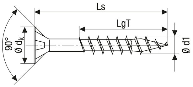 Общая длина Ls 60 мм, частичная резьба LGT 35 мм, муфта Т20, количество в упаковке 500