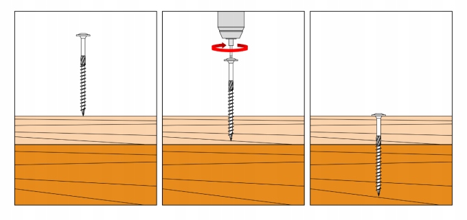4. Винты должны быть привинчены непосредственно в деревянный подложку без сверления отверстий