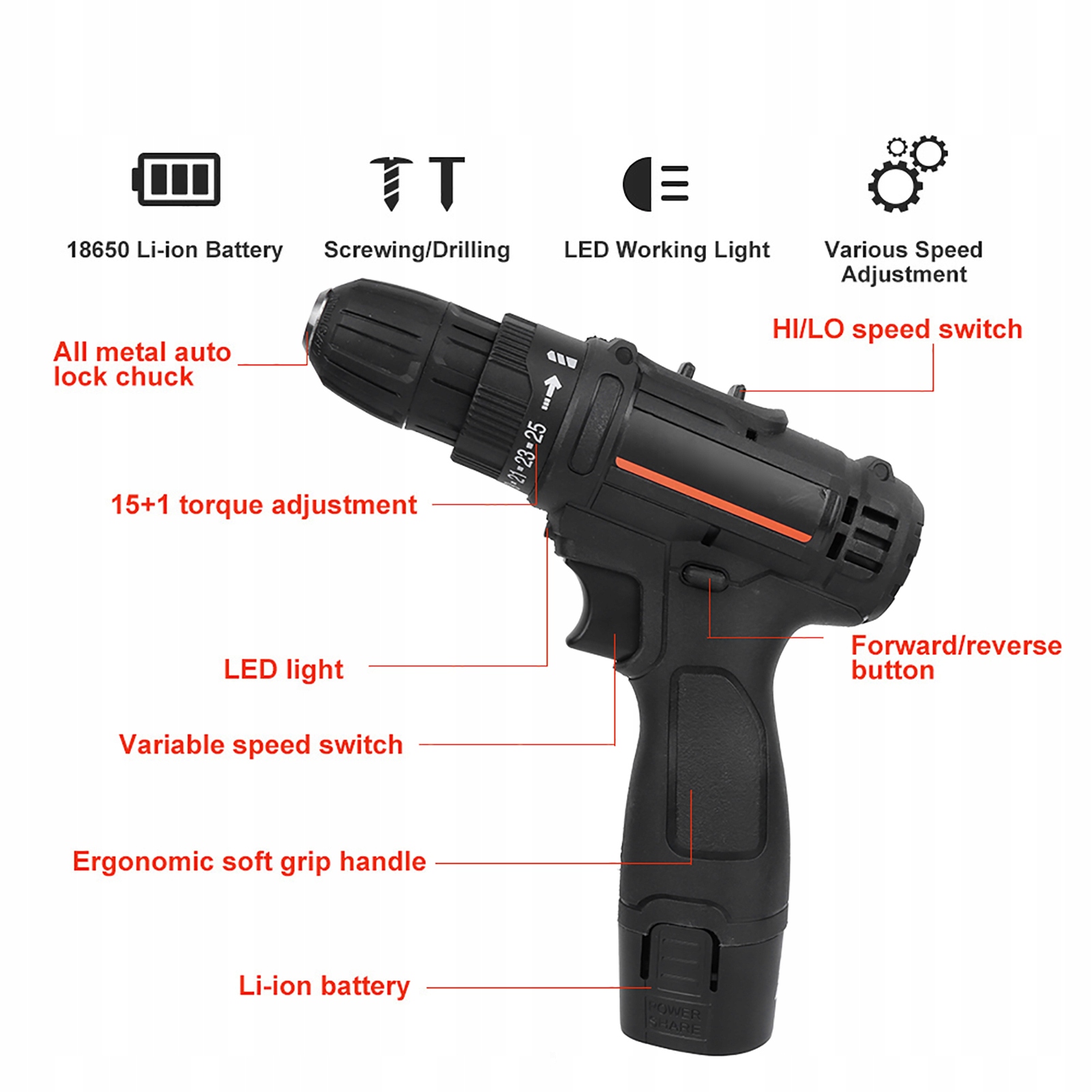 Аккумуляторная дрель, электрическая отвертка 12 В, черная, быстрая XS