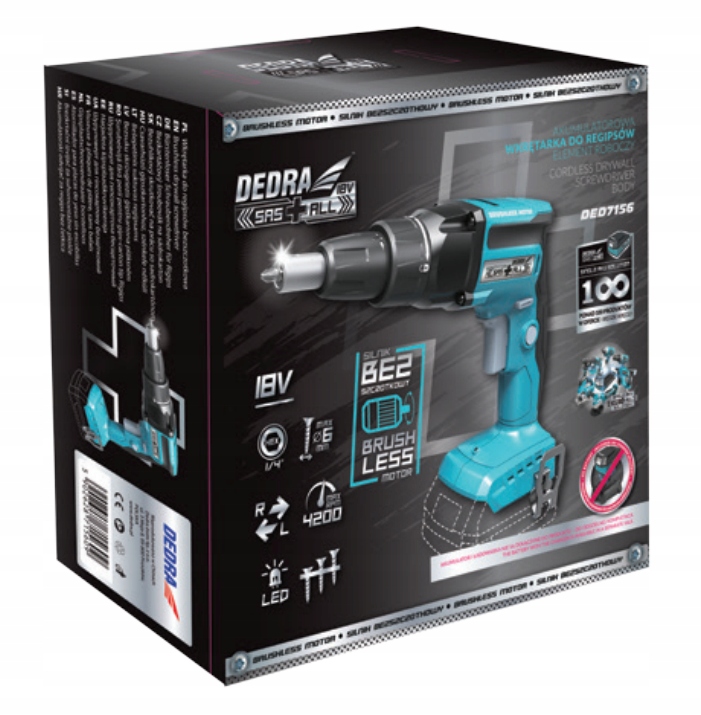 ОТВЕРТКА НА АККУМУЛЯТОРЕ ДЛЯ ГИПСОВЫХ ПЛИТ 1/4'' 18В DED7156 DEDRA