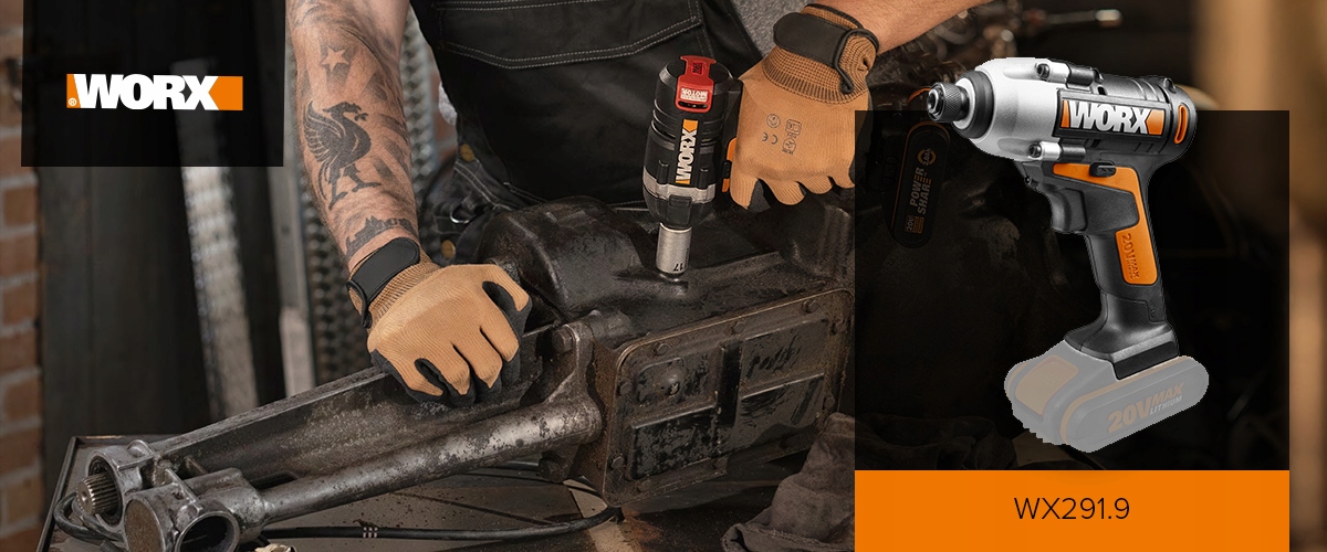 Ударный винтоверт WORX WX291.9, 170 Нм, со светодиодом, 20 В, в комплекте с аккумулятором Power Share WA3551, 20 В, 2,0 Ач и зарядным устройством WA3880.