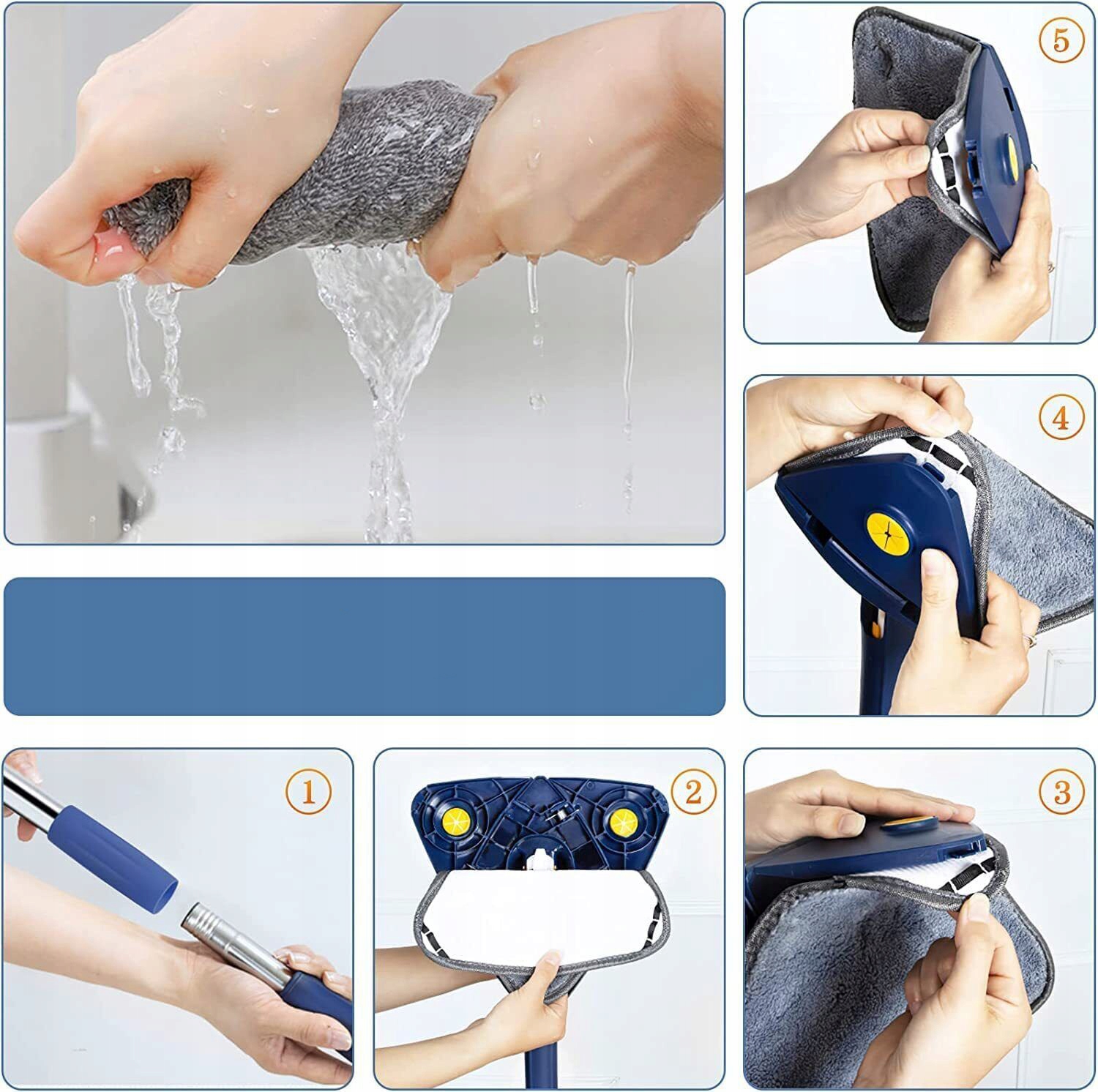 💧💧 влажное и сухое использование - Эта шваблина для очистки стен содержит 2 чистящих прокладки из микрофибры для влажной и сухой чистки. Головы из микрофибры идеально подходят для вытирания окон, очистки, пылесотки и удаления волос.