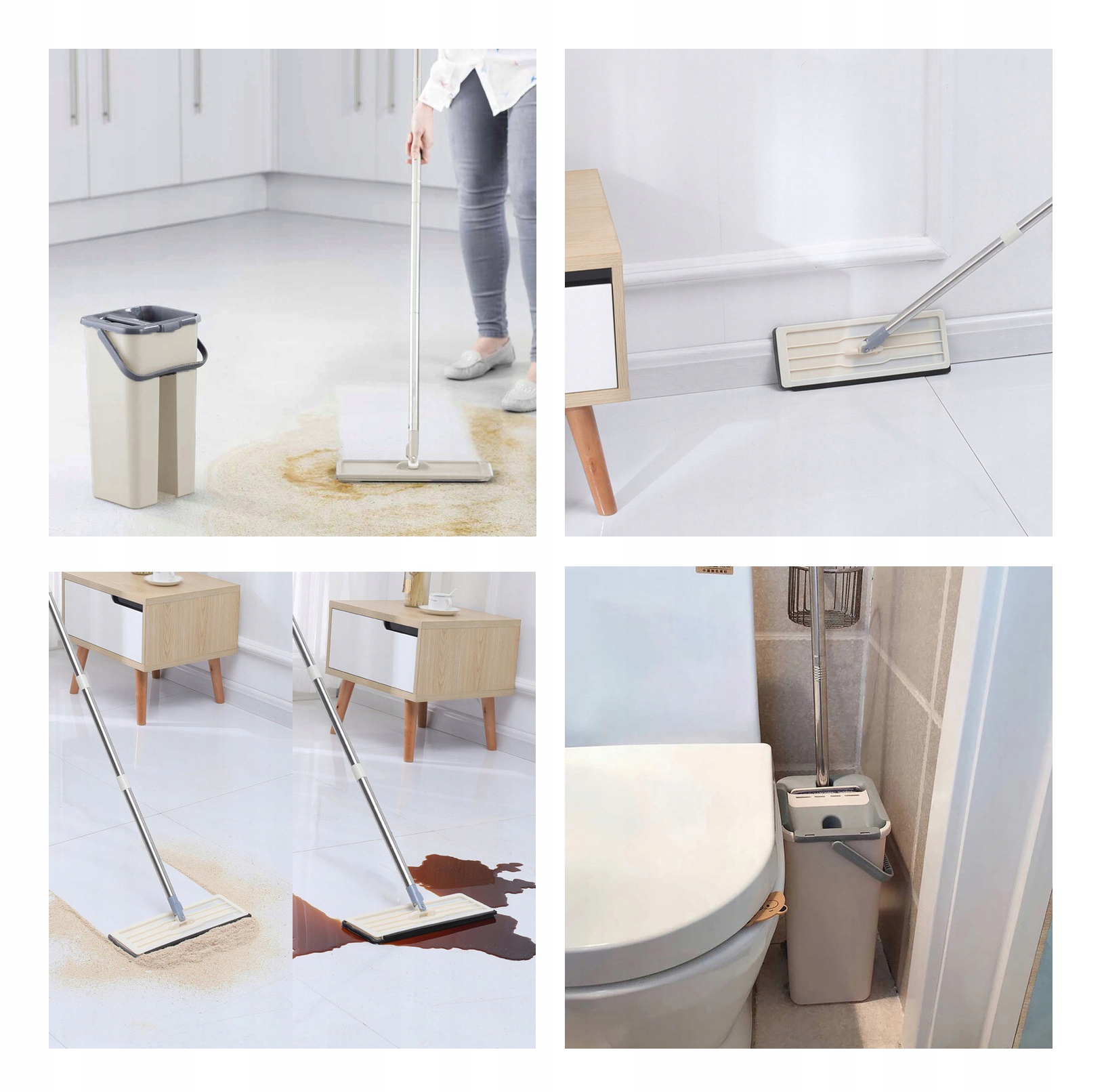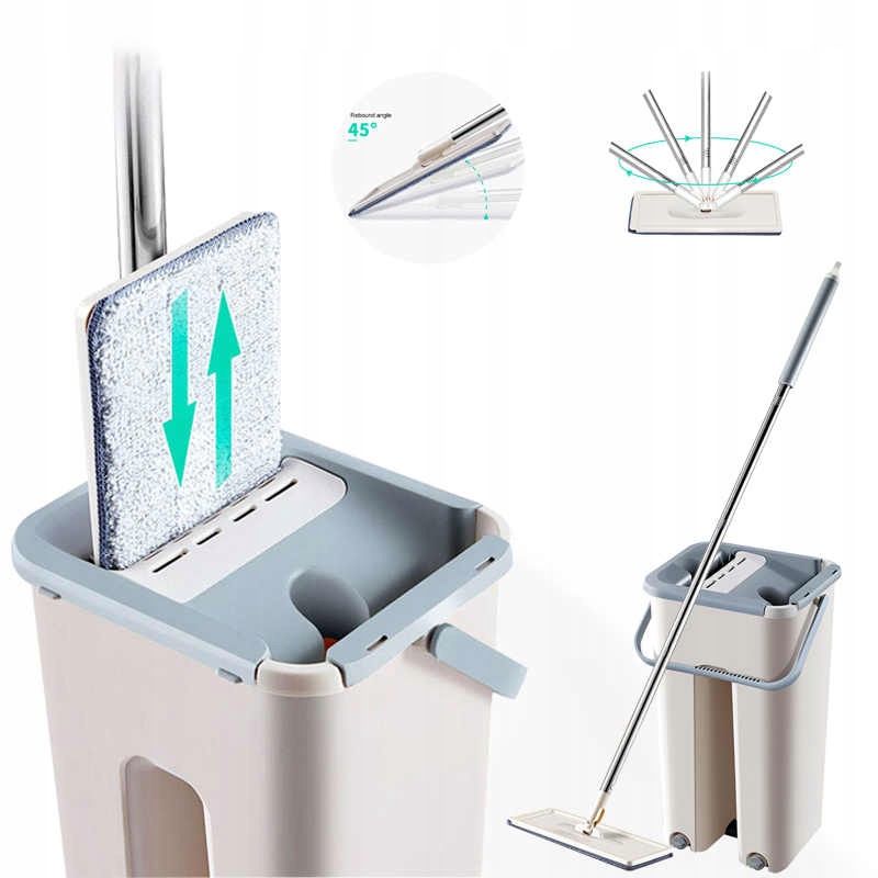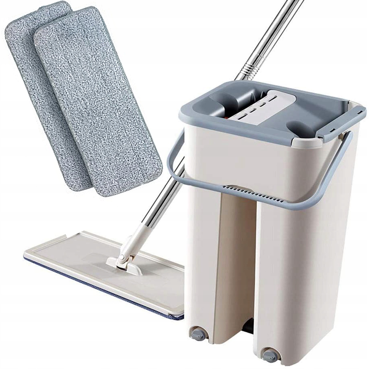 ВРАЩАЮЩАЯСЯ ПЛОСКАЯ ШВАБРА С ДВУХКАМЕРНЫМ ВЕДРОМ С ОТЖИМКОЙ + 2 КАРТРИДЖА