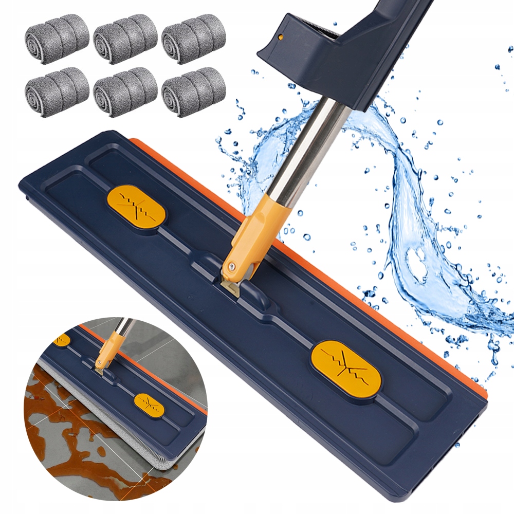 ПЛОСКАЯ ШВАБРА, ВРАЩАЮЩАЯСЯ НА 360°, ТЕЛЕСКОПИЧЕСКАЯ РУЧКА, МЫТЬЕ С 6 ПОЛОТНЯМИ.