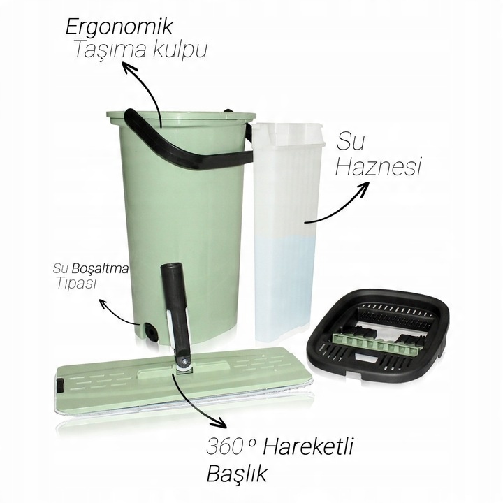Благодаря насадке-ведру швабра очищается и сушится после каждой протирки.