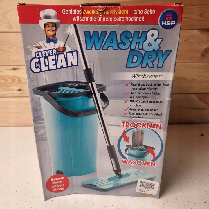 Швабра Clever Clean Wash & Dry с оригинальной двухкамерной системой: одна сторона моет, другая сушит швабру.