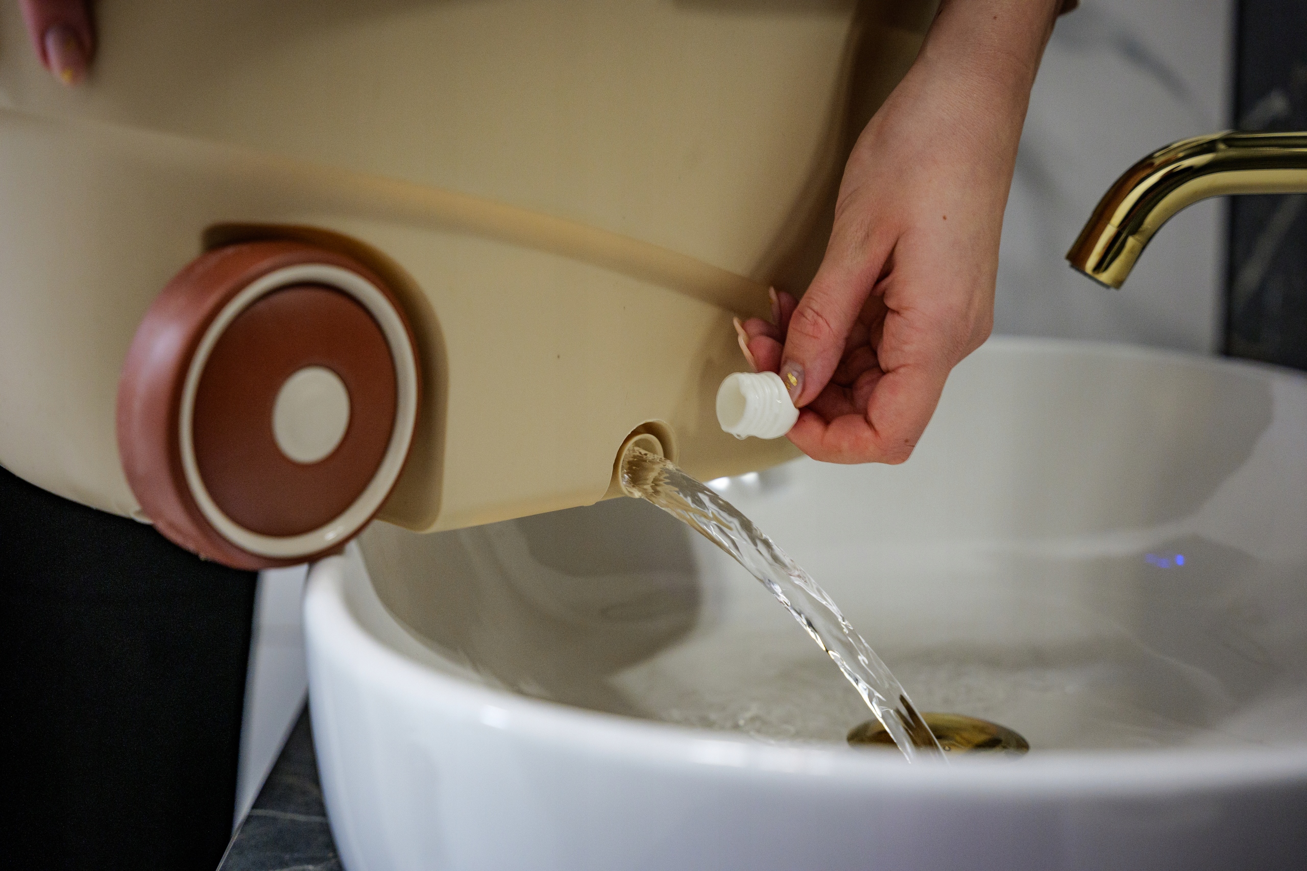 Удобно расположенная пробка сбоку швабры позволяет легко и быстро и гигиенично сливать использованную воду.