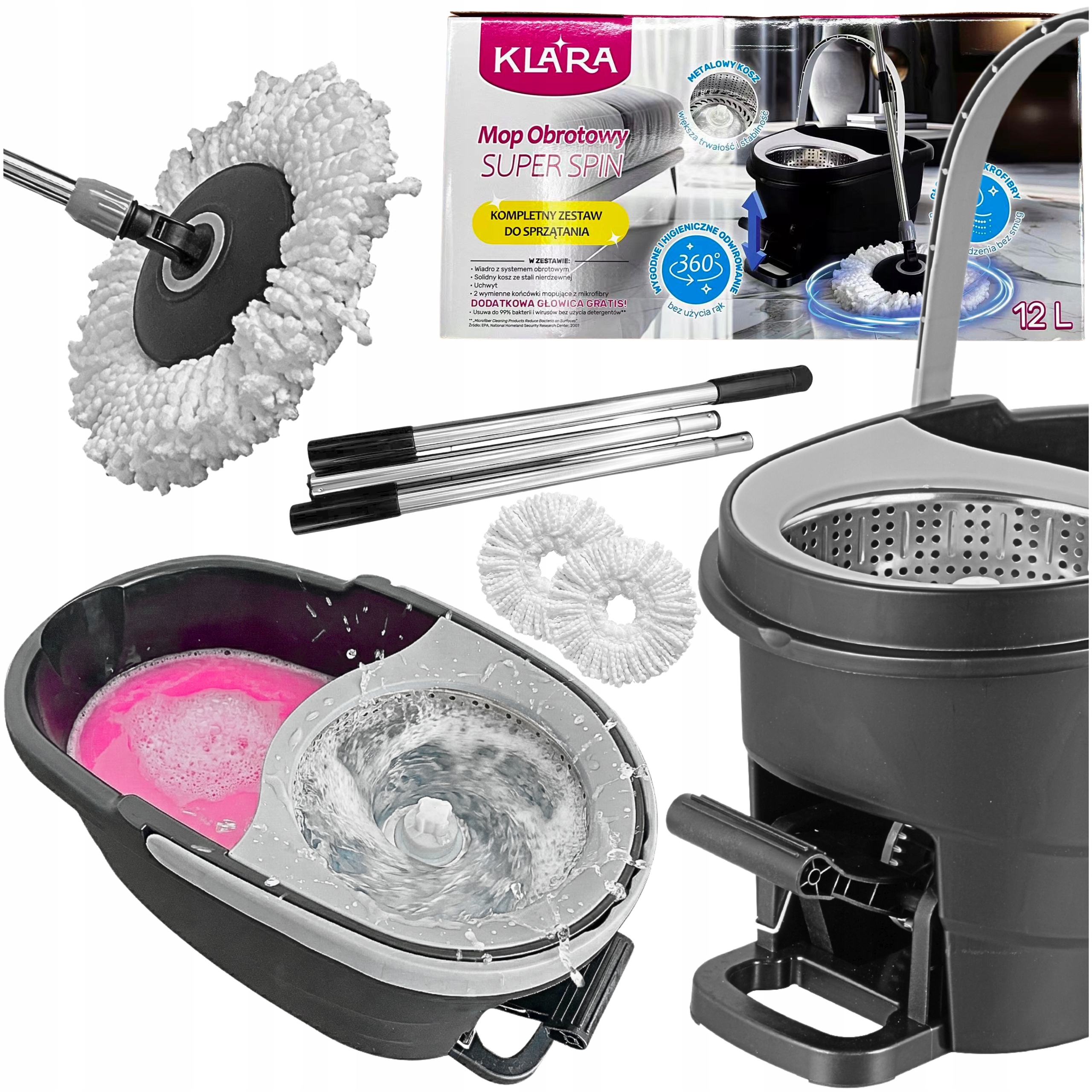 ВРАЩАЮЩАЯСЯ НАПОЛЬНАЯ ШВАБРА 360 TURBO 2 ПОДУШКИ ВЕДРО ИЗ МИКРОФИБРЫ